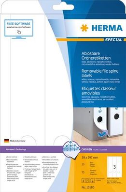 • HERMA Ordnerr?cken-Etiketten Special, 59 x 297 mm, weiá