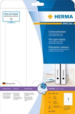 • HERMA Ordnerr?cken-Etiketten Special, 297 x 61 mm, weiá