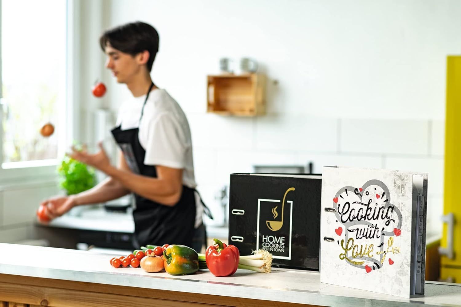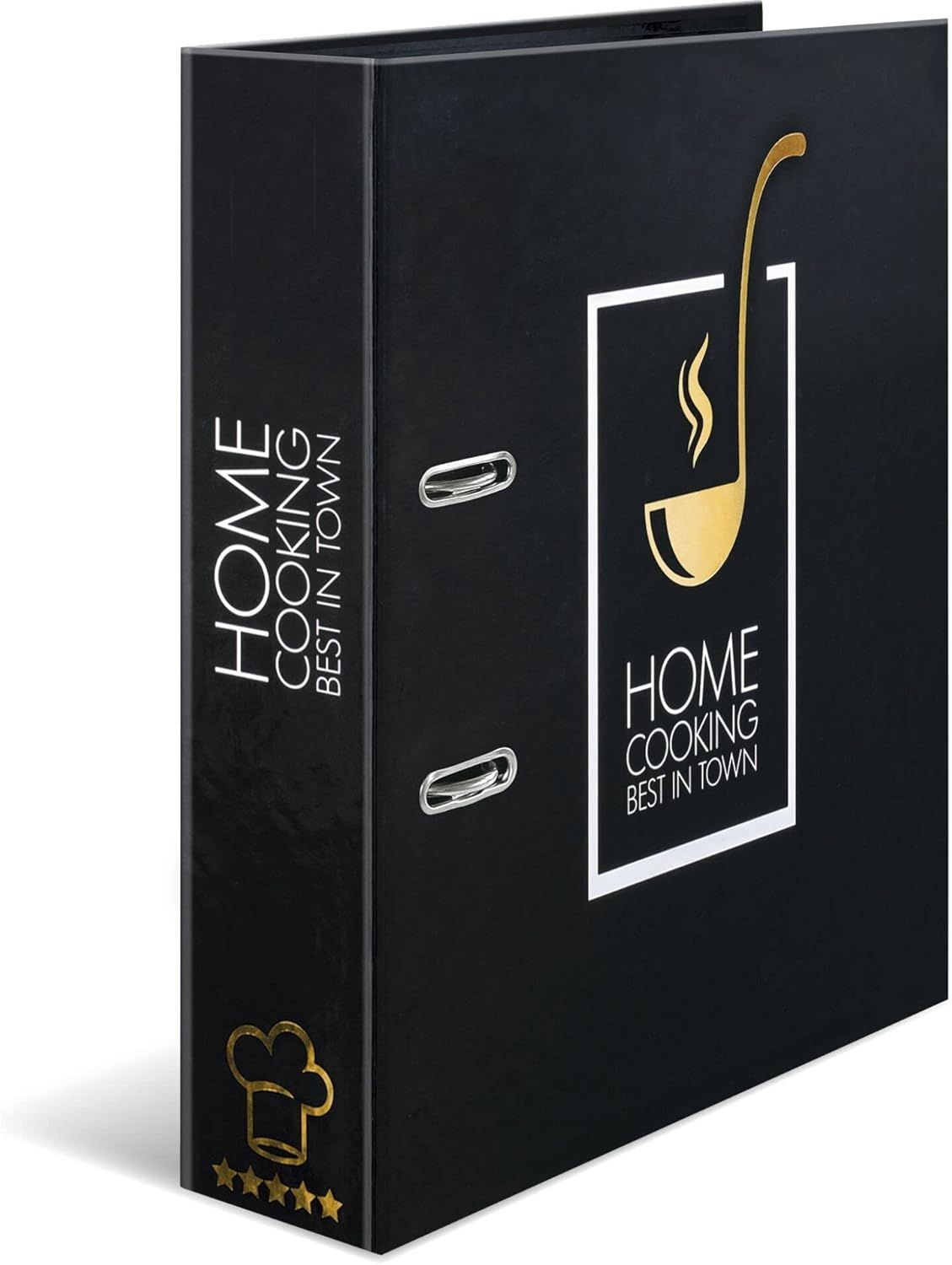 Herma HERMA Rezeptordner A4 zum Selberschreiben Schwarz Gold, 7 cm breit, Motiv Rezeptbuch