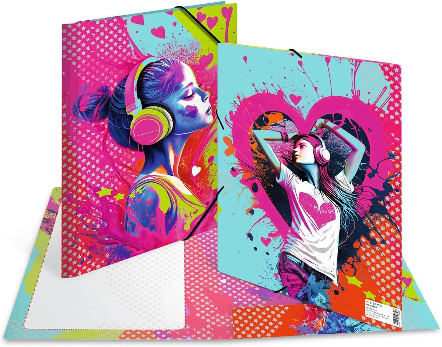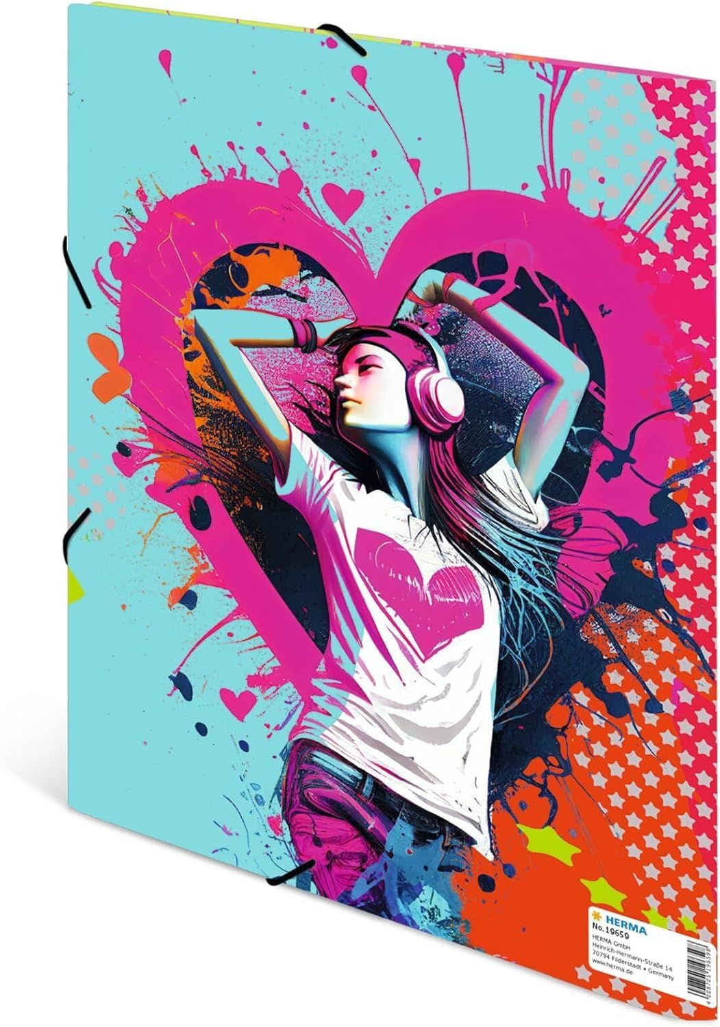 Herma HERMA Sammelmappe A4 Musik Mädchen, Kinder Eckspanner-Mappe aus Pappe mit Kunst Motiv