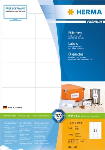 Herma HERMA Universal-Etiketten Premium, 70 x 50,8 mm, weiá