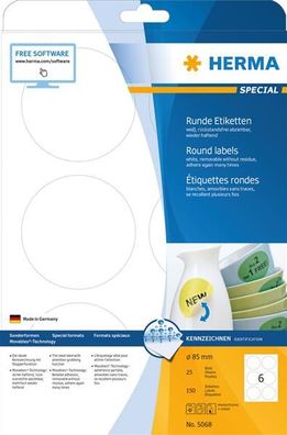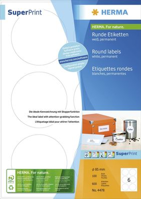 • HERMA 4478 Universal-Etiketten Special Durchmesser 85 mm weiß