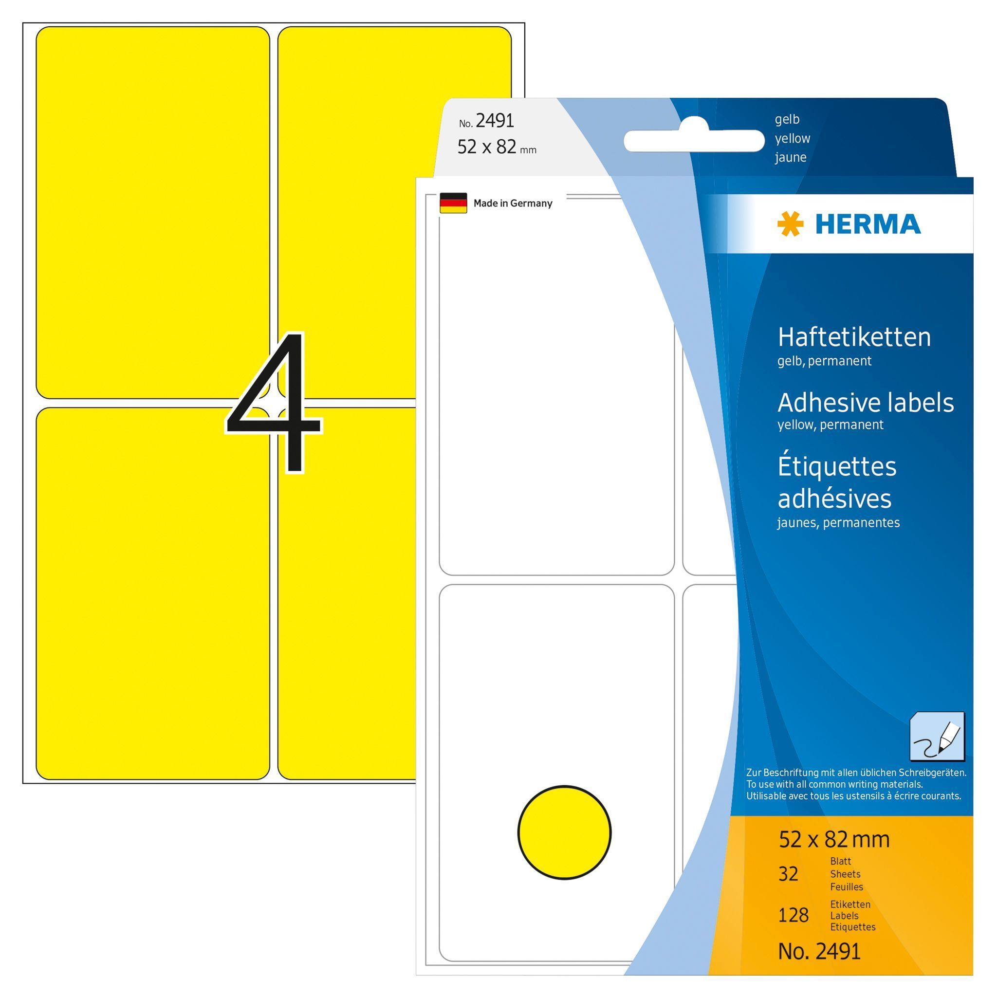 Herma Herma Vielzwecketiketten permanent 52 x 82 mm gelb 32 Bl 128 Etik