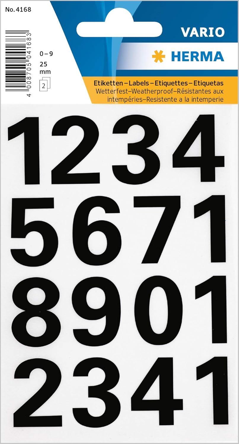 Herma Herma Zahlen, 25mm, 0-9, wetterfest, Folie, schwarz, 1 Bl., 4168