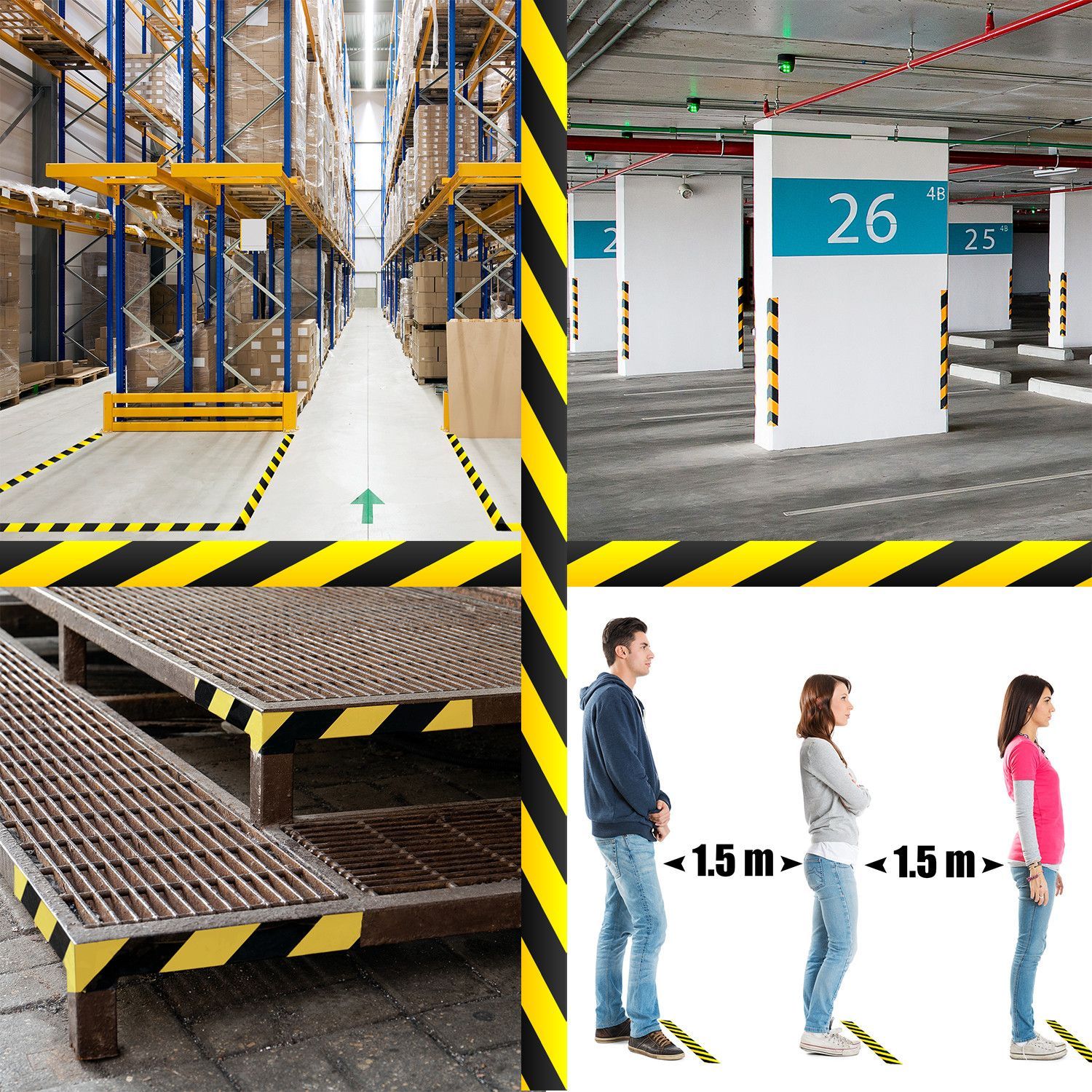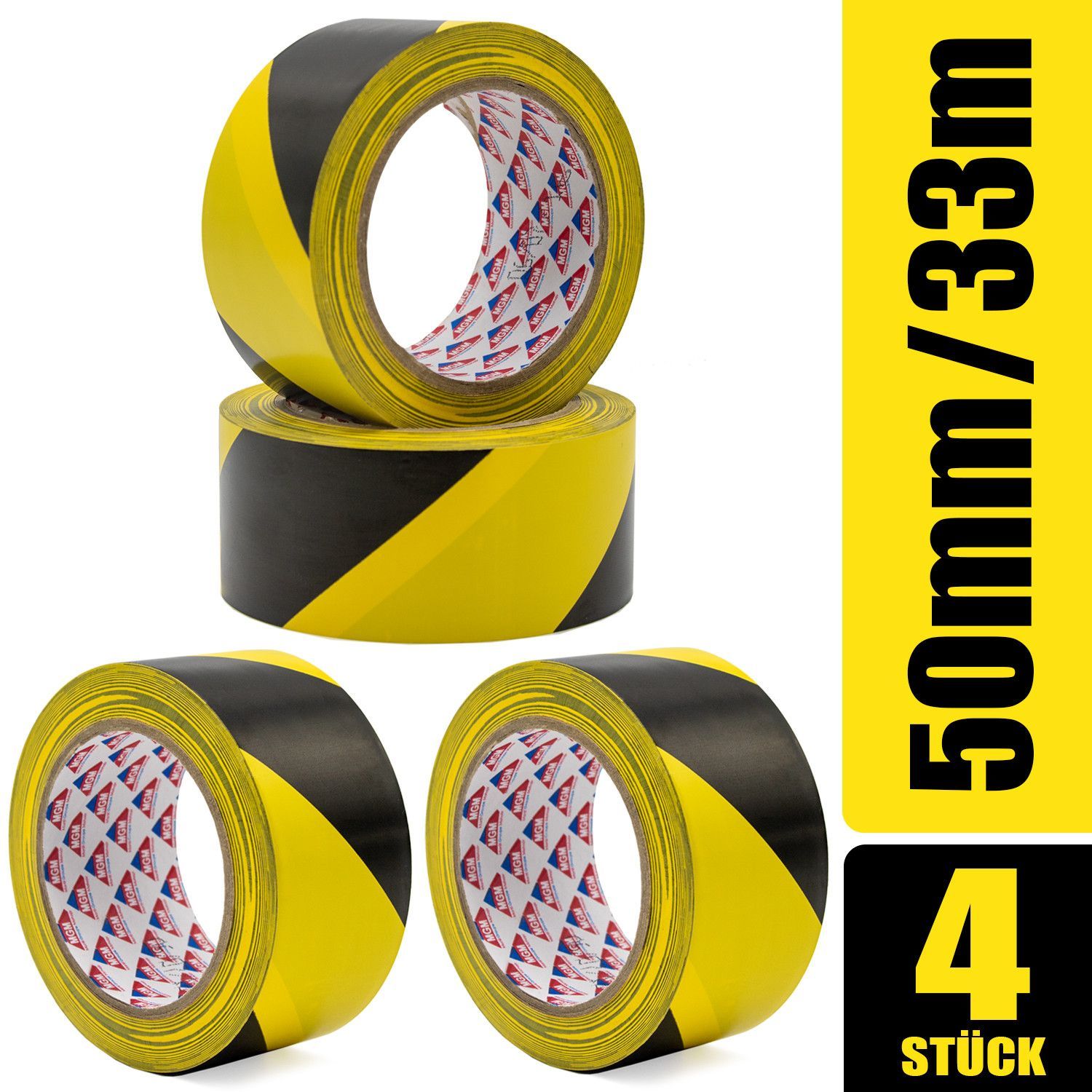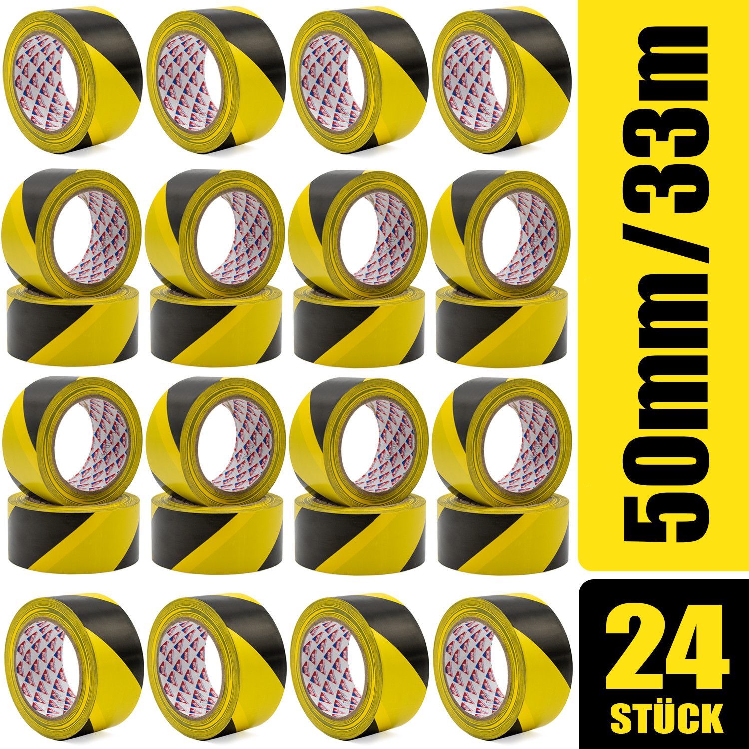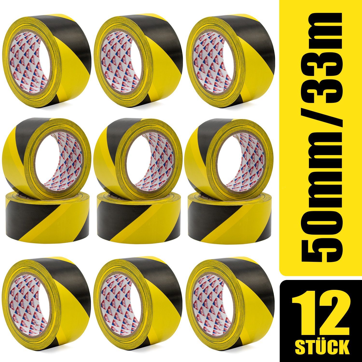 Hermax Warnband Klebeband Rollen Schwarz-Gelb 50mmx33m Warnklebeband Absperrband Set