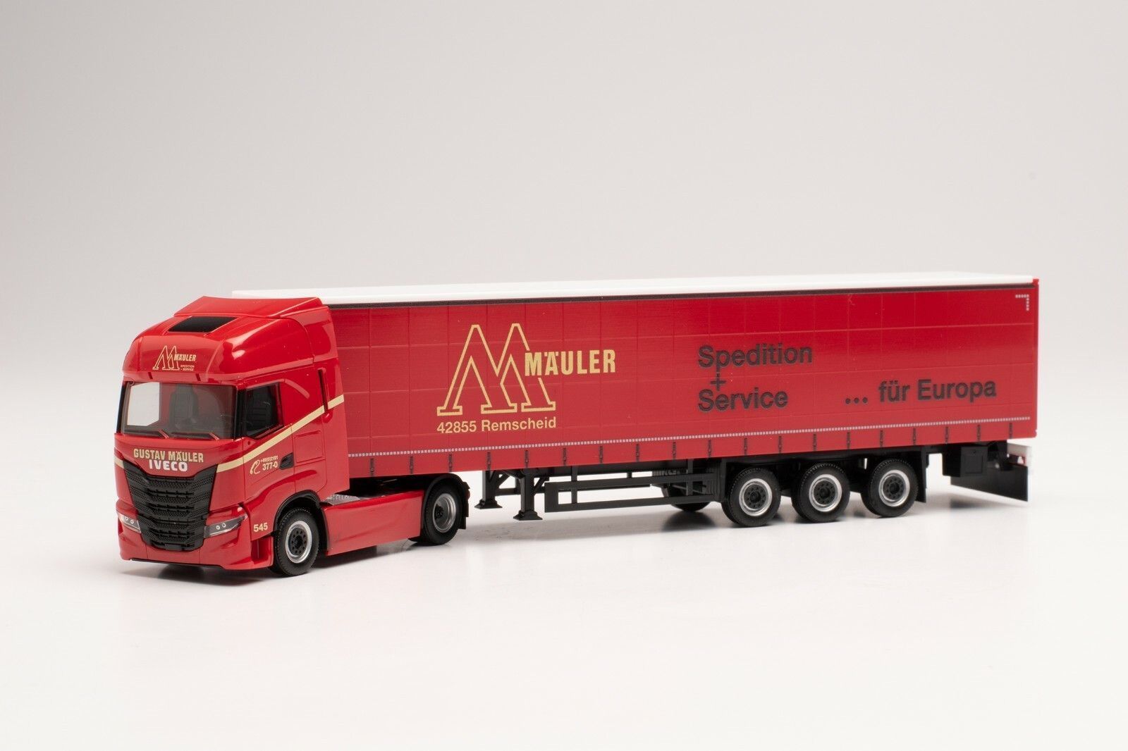 Herpa Herpa 314121 - Iveco S-Way Gardinenplanen-Sattelzug - Gustav Mäuler. 1:87