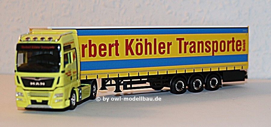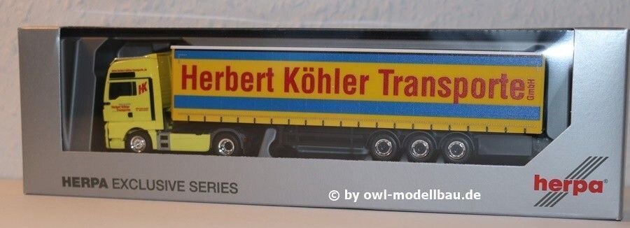 Herpa Herpa 938327 - MAN TGX XXL Gardinenplanen-Sattelzug - Herbert Köhler. 1:87