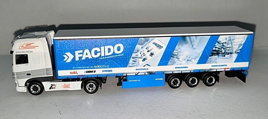 Herpa Herpa 941112 | DAF XF105 SSC | Gardinenplanen-Sattelzug | FACIDO/Justen | 1:87