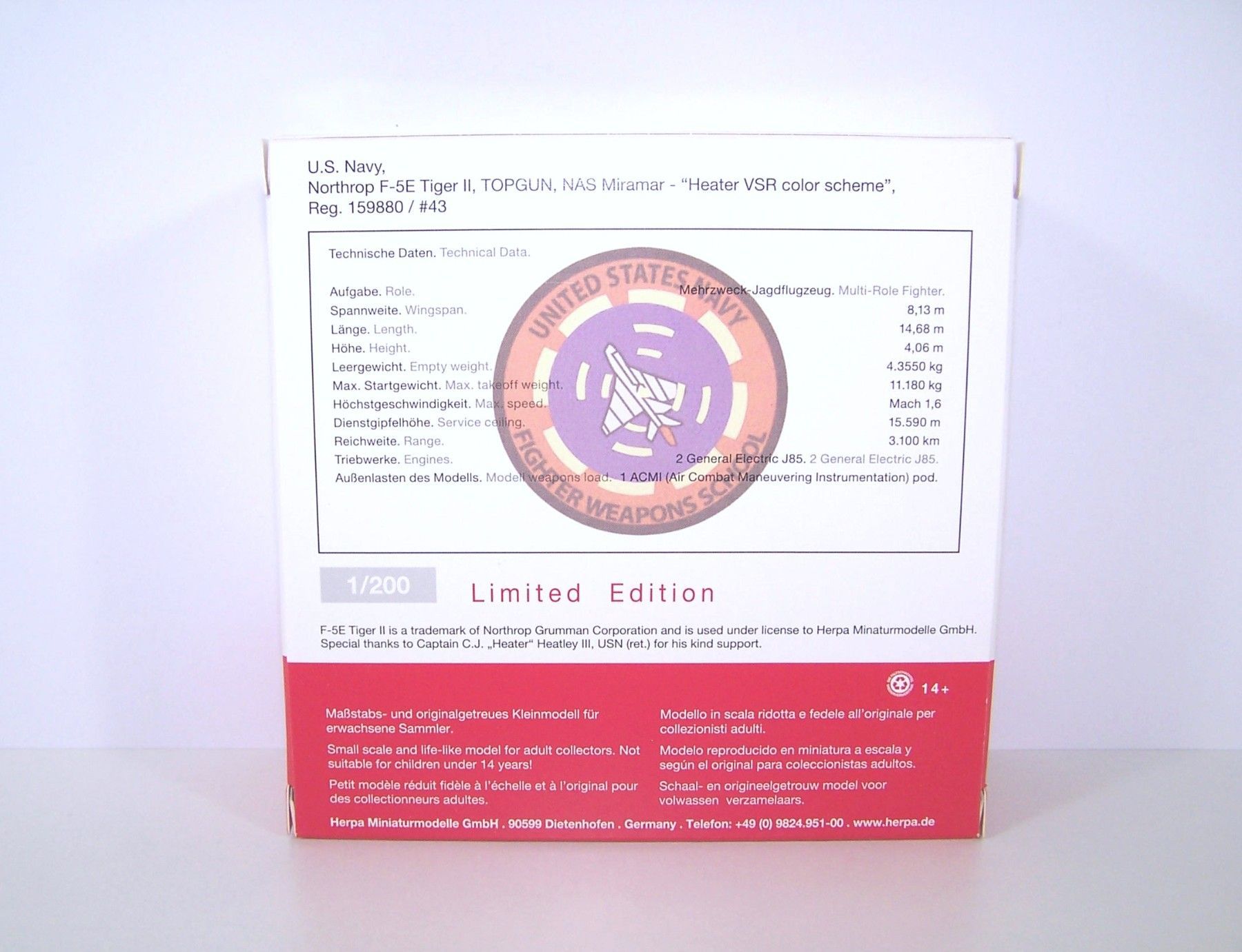 Herpa Herpa Wings 1:200 - 558099 US Navy Northrop F-5E Tiger II TOP-GUN NAS Miramar
