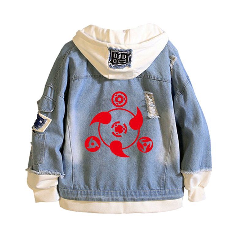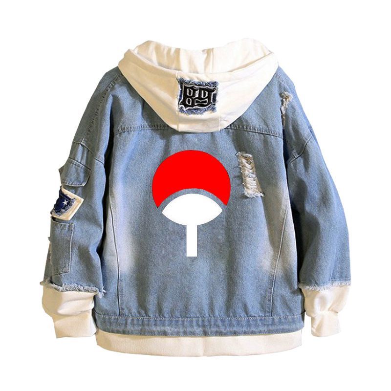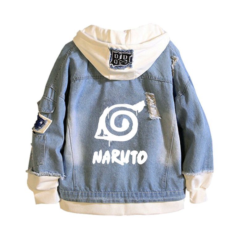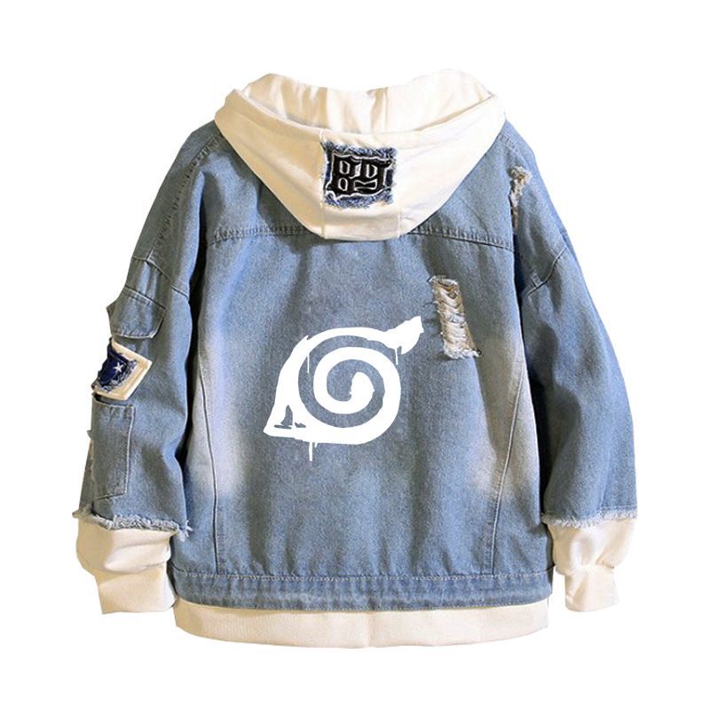 Herren Anime Naruto Drucken Kapuze Jeansjacke Hoodie Mantel Sweatshirt jacket