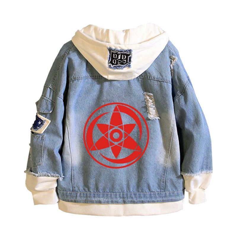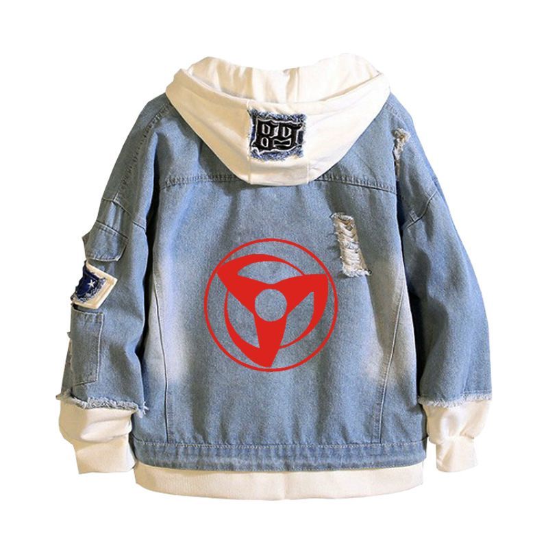 Herren Anime Naruto Sharingan Kapuze Jeansjacke Hoodie Mantel Sweatshirt jacket