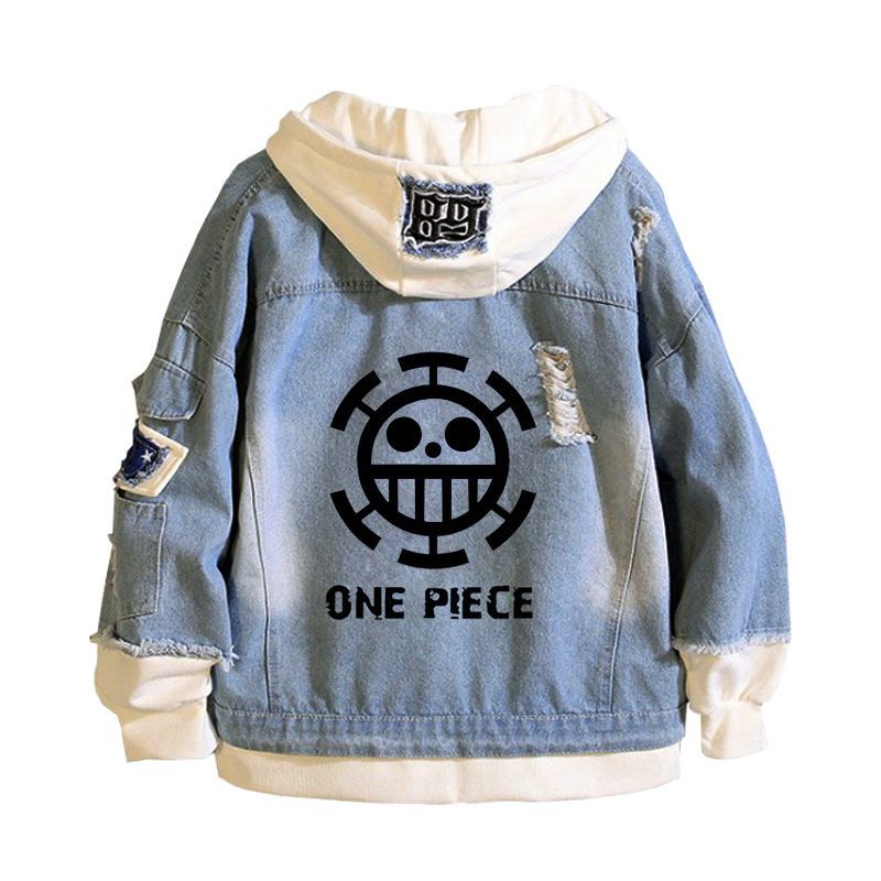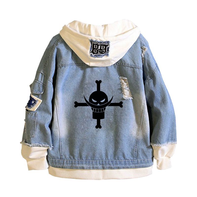 Herren Anime One Piece Muster Kapuze Jeansjacke Hoodie Mantel Sweatshirt jacket