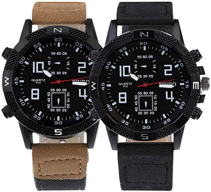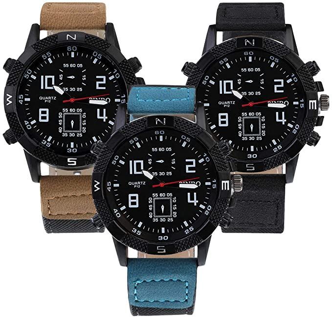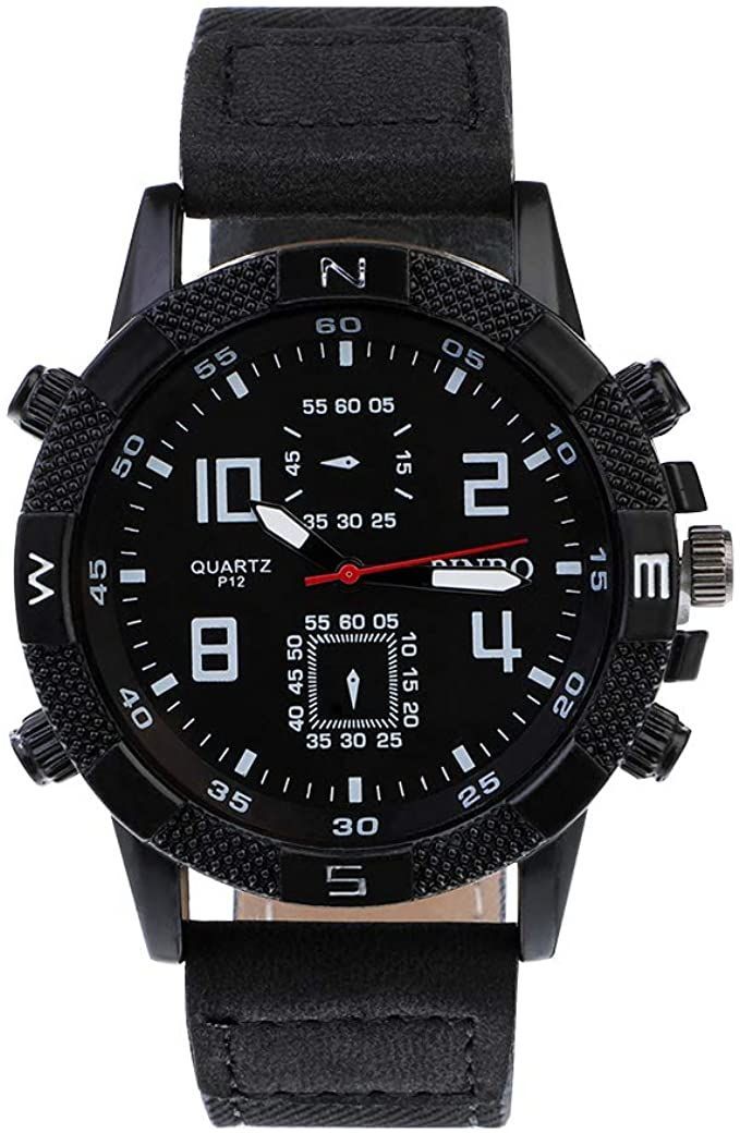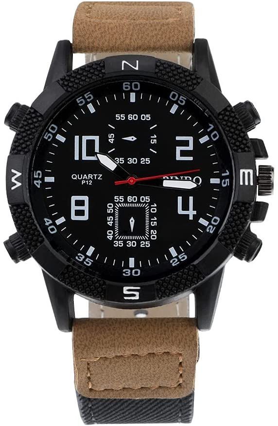 Souarts Herren Armbanduhr Männer Einfach Sport Analoge Quarzuhr PU Leder Armband Uhren mit Kleine Deko Zifferblatt
