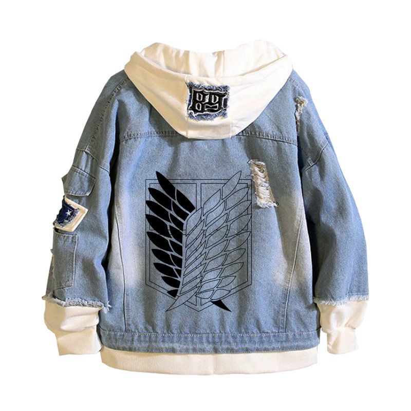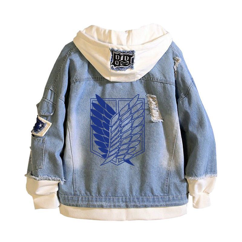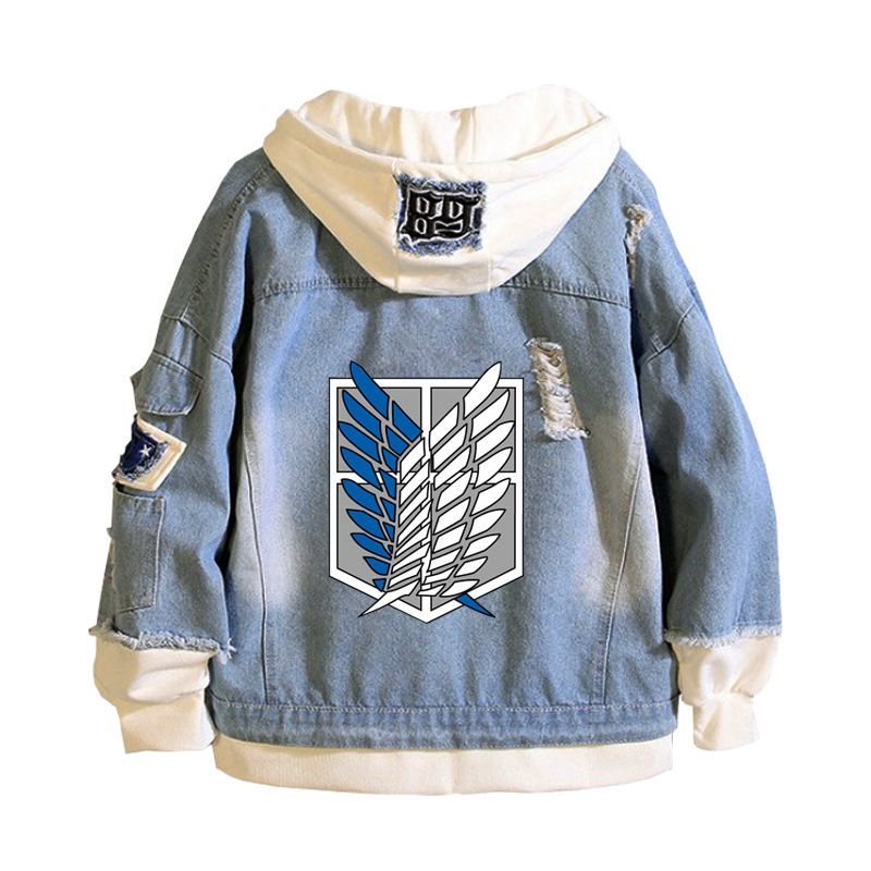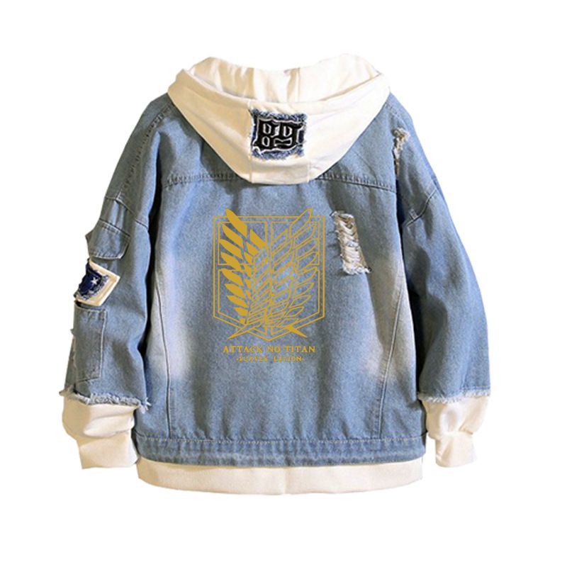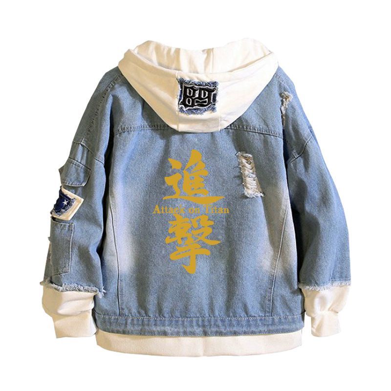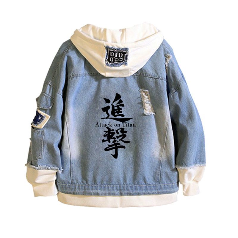 Herren Attack On Titan Muster Kapuze Jeansjacke Hoodie Mantel Sweatshirt jacket
