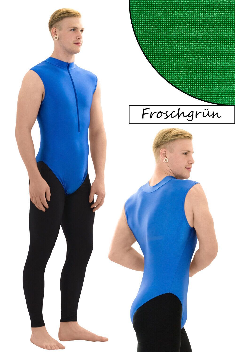 Herren Body ohne Ärmel, mit Kragen und Frontreißverschluss. Material: 80% Polyamid 20% Elasthan. Elastisch und glänzend, in vielen verschiedenen Farben. Waschbar bei 30°C Maschinenwäsche Made in Germany, by us – ML-Sport24!