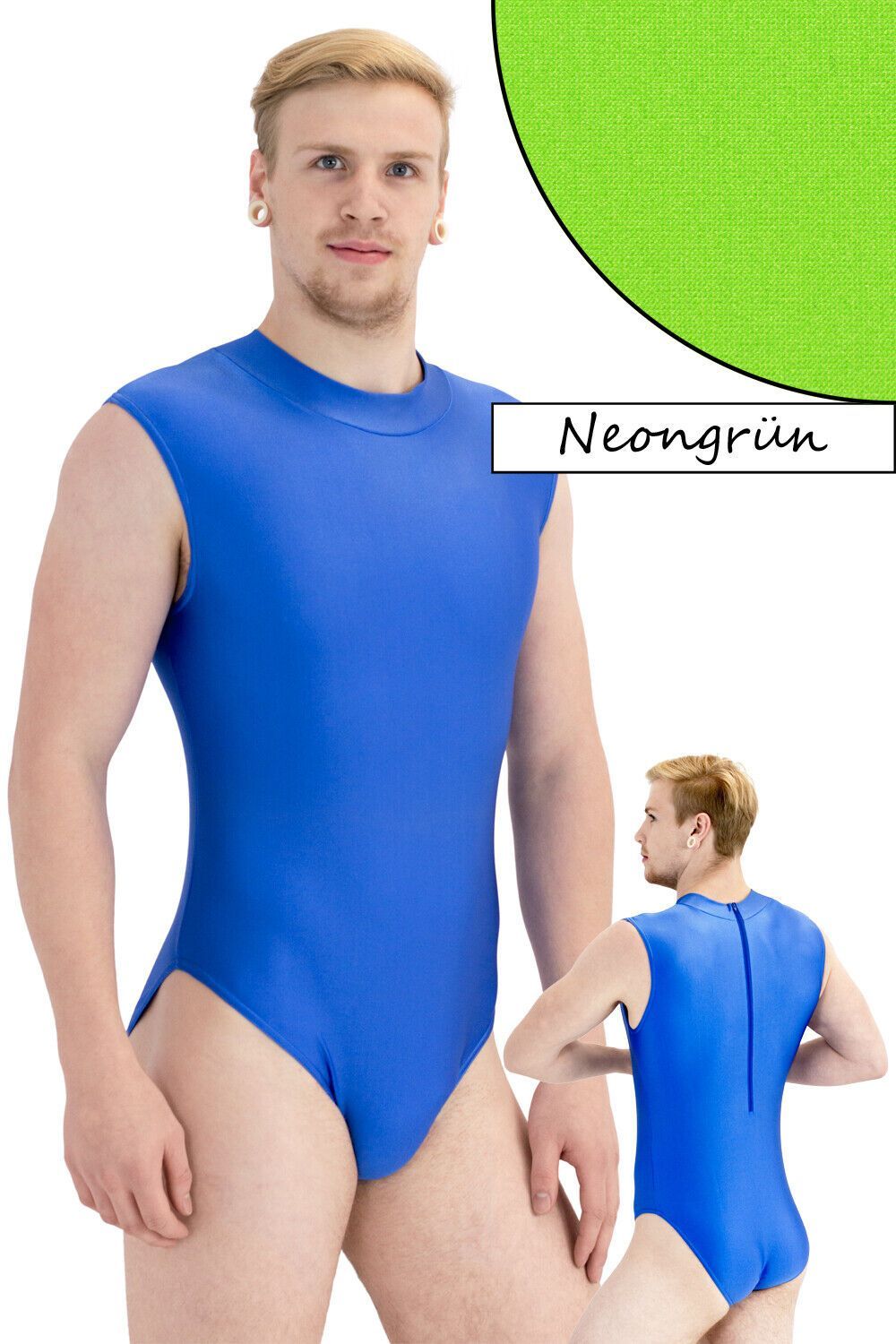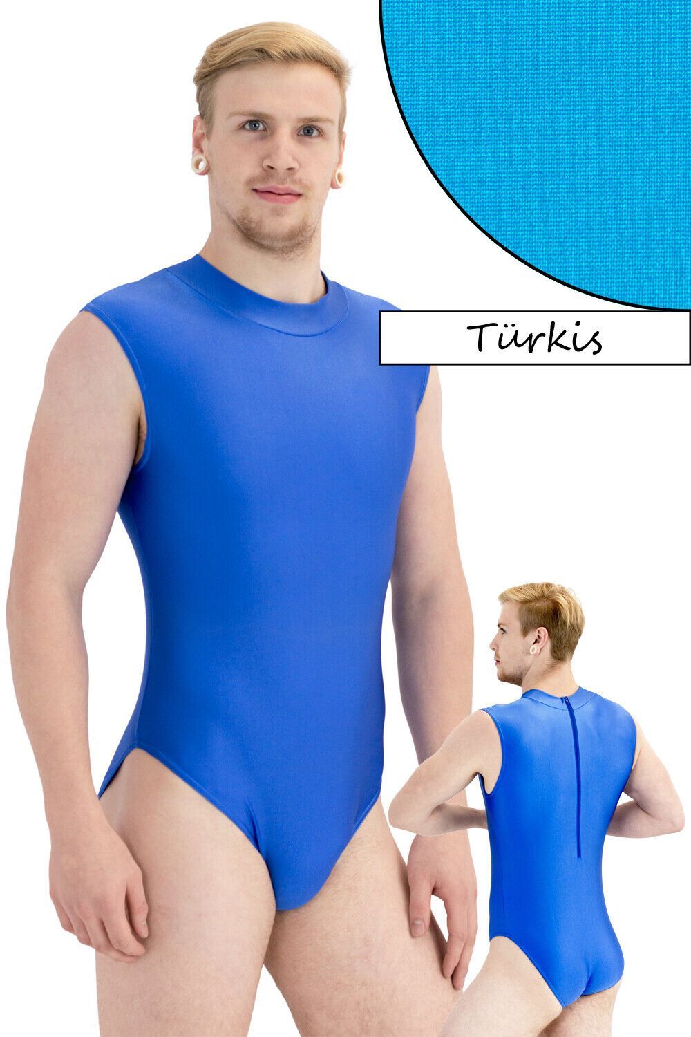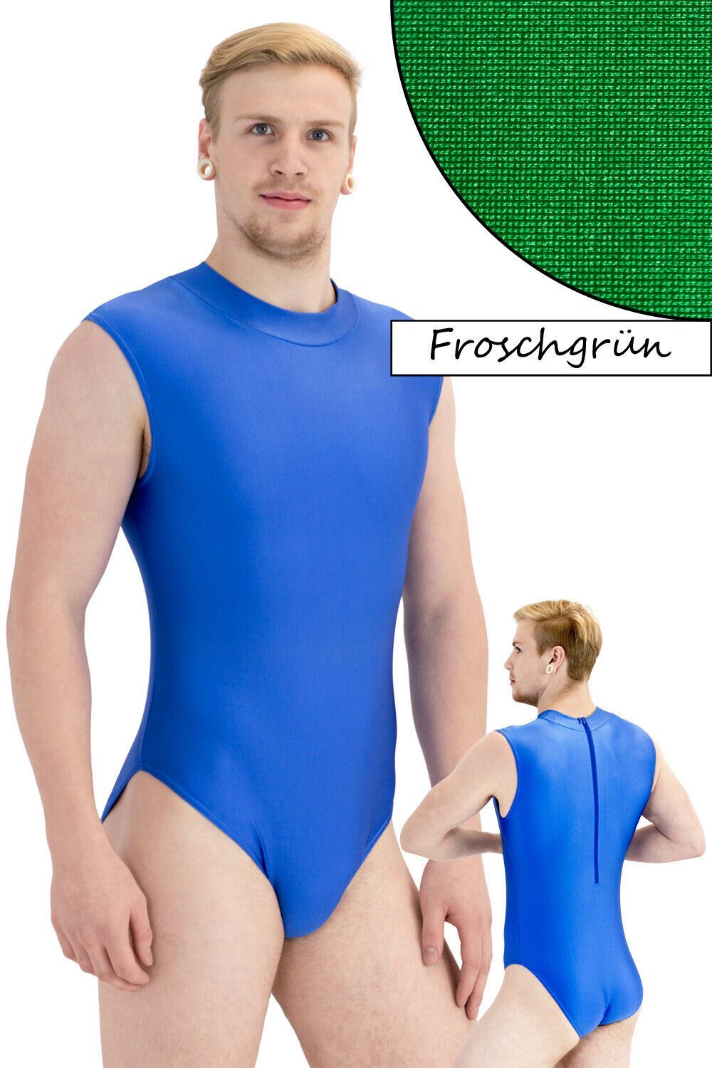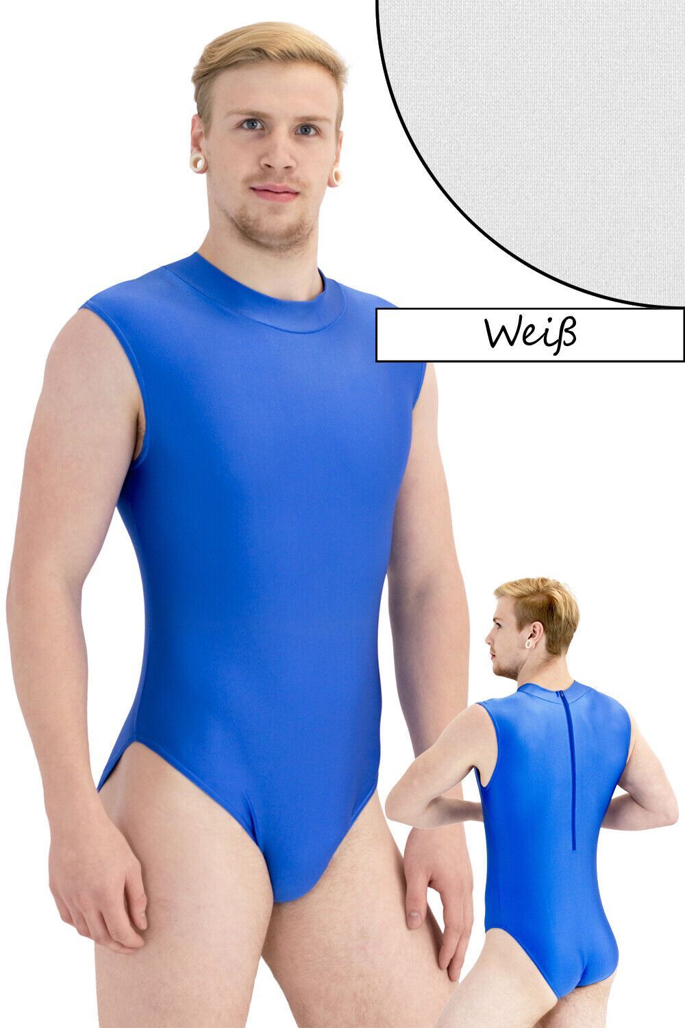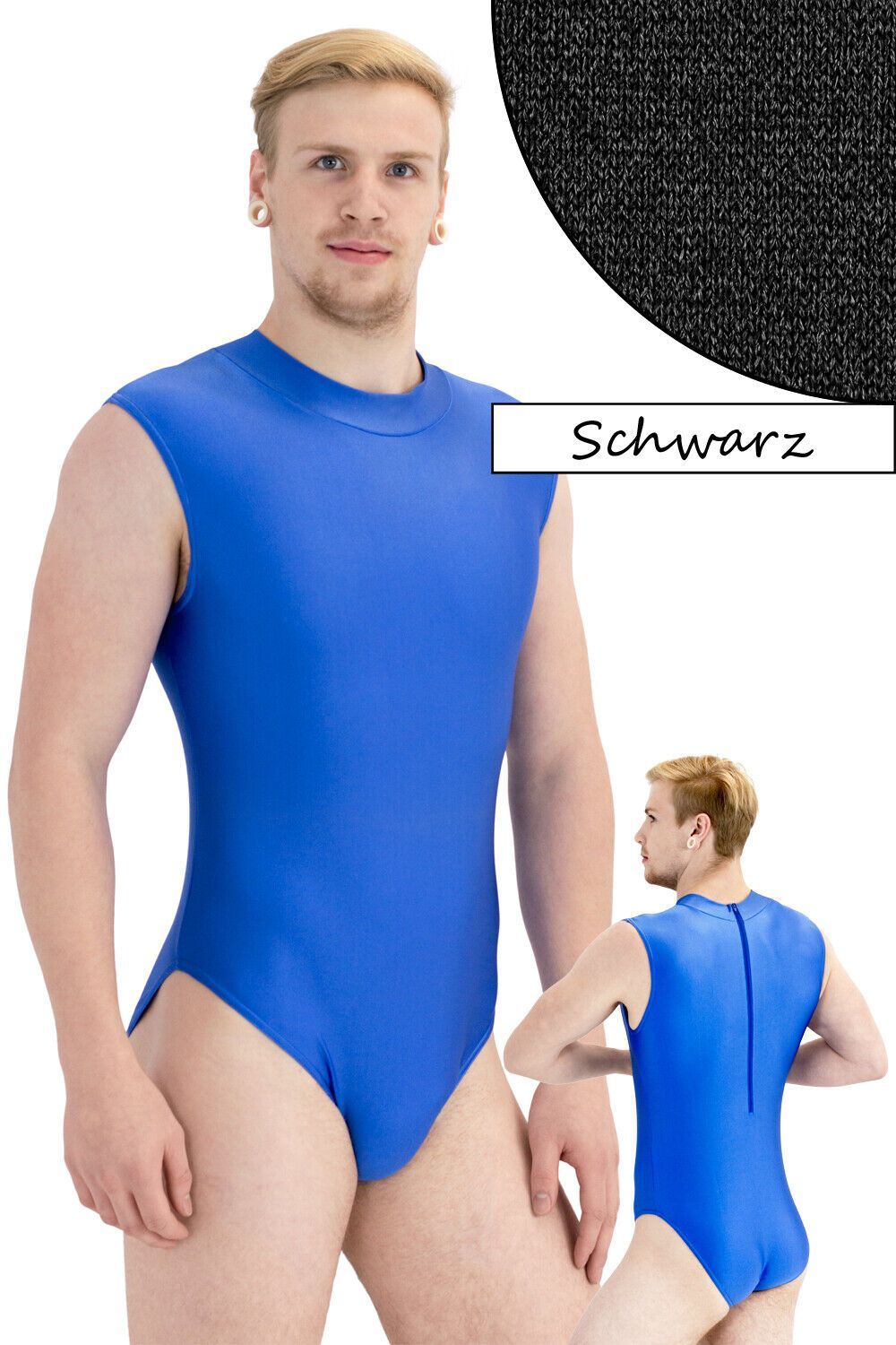 Herren Body ohne Ärmel, mit Kragen und Rückenreißverschluss. Material: 80% Polyamid 20% Elasthan. Elastisch und glänzend, in vielen verschiedenen Farben. Waschbar bei 30°C Maschinenwäsche Made in Germany, by us – ML-Sport24!