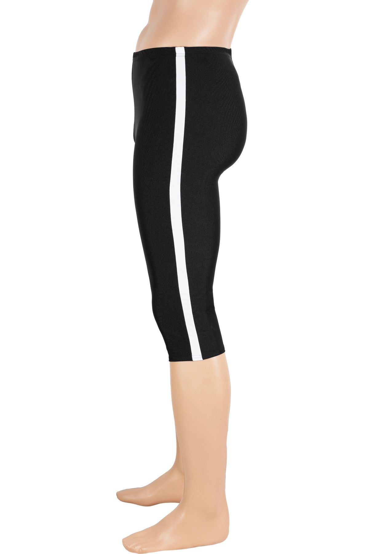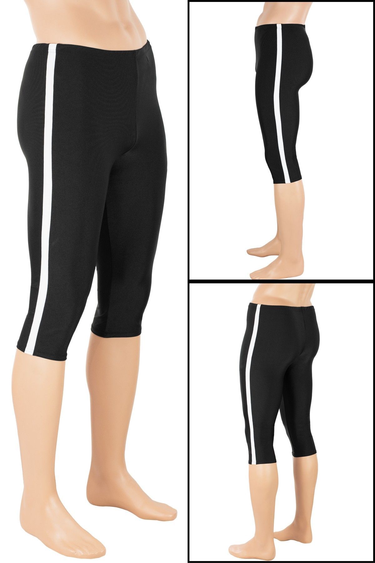 Herren Capri schwarz mit weißen Galonstreifen 3/4 Sporthose stretch hauteng glänzend
