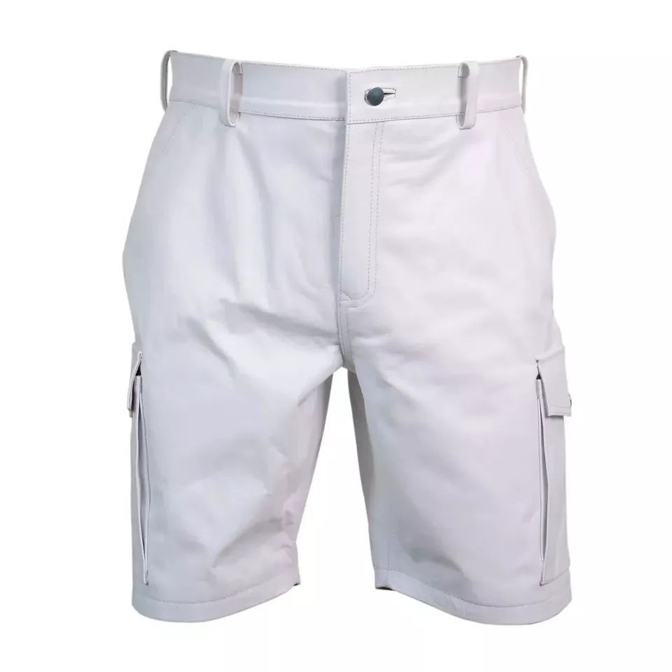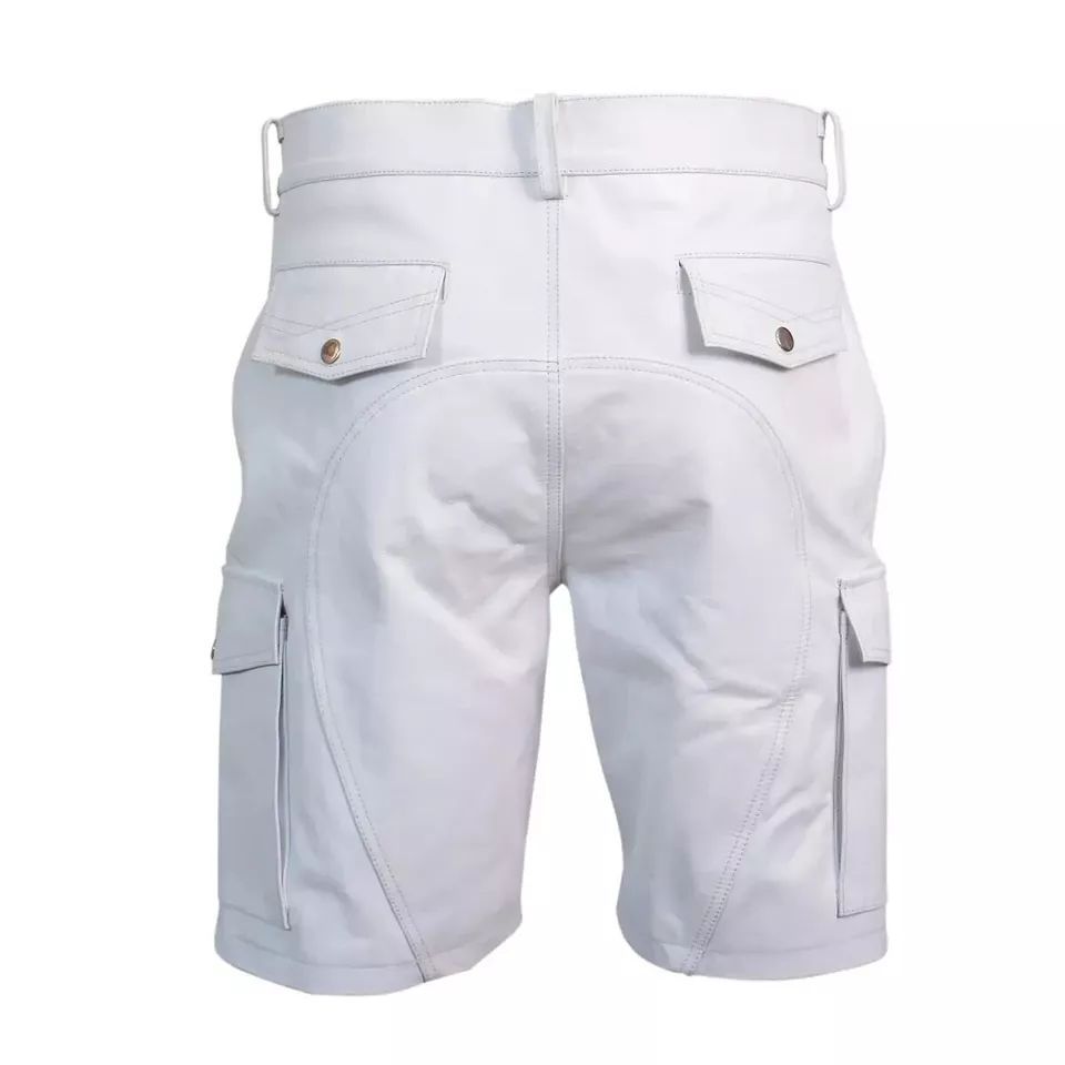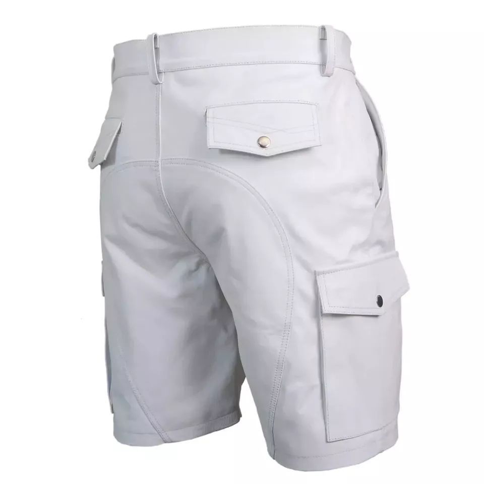 Herren Cargo Shorts kurze Hose knielang Shorts Leder Shorts Cargo Lederhosen