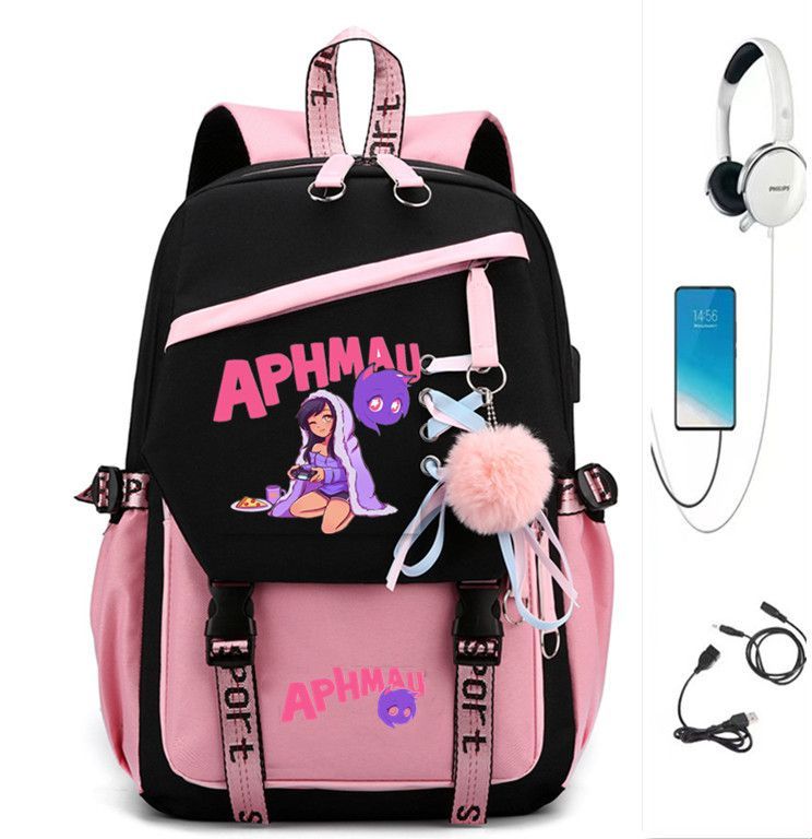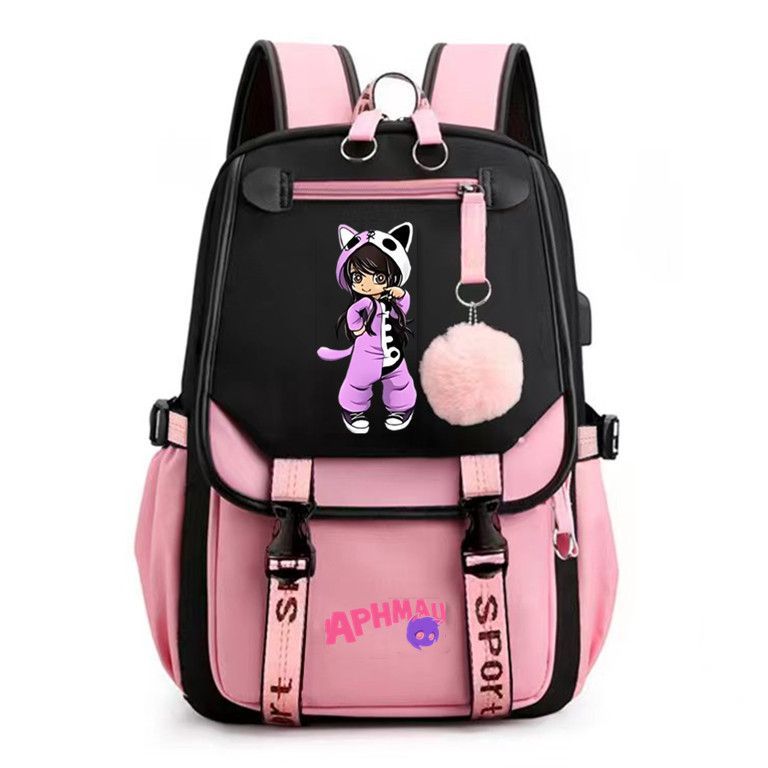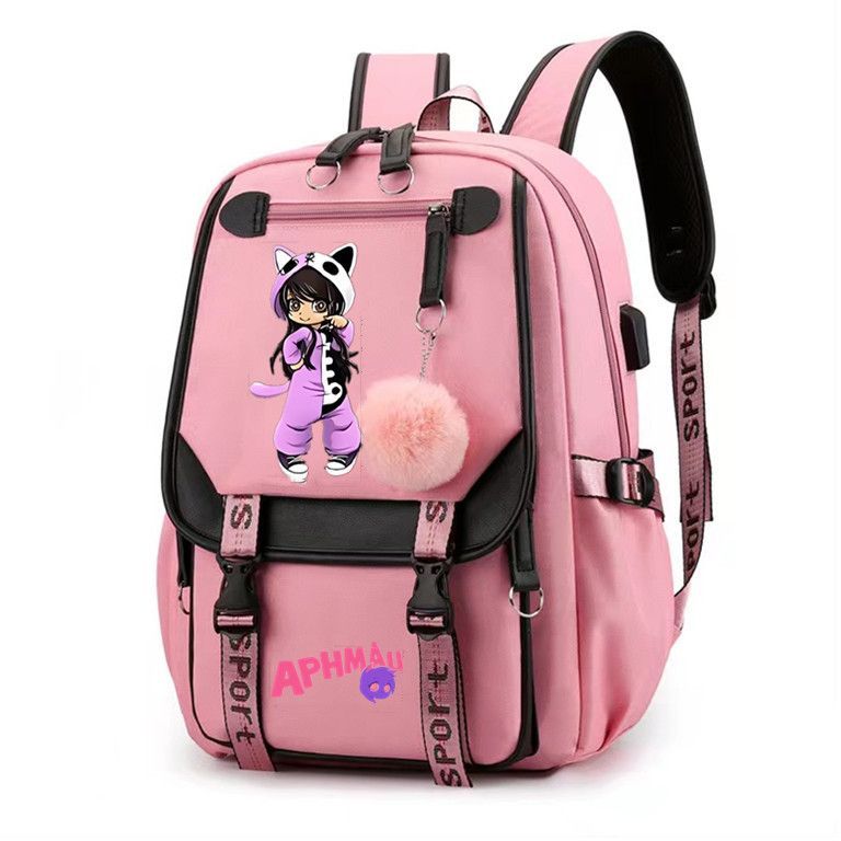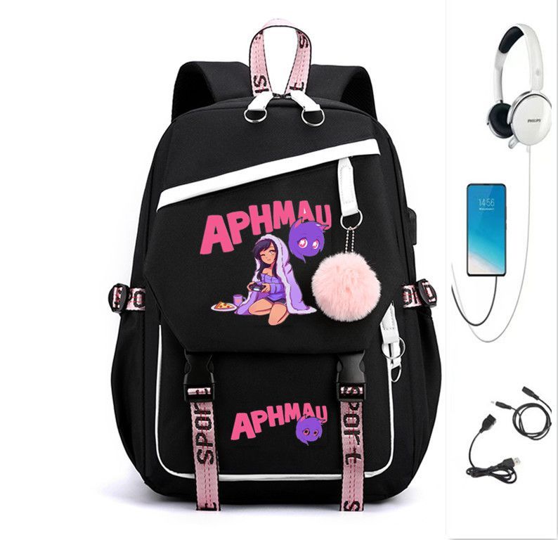 Herren Damen Aphmau Schultasche Merch Rucksack USB Ladeanschluss Laptoptasche