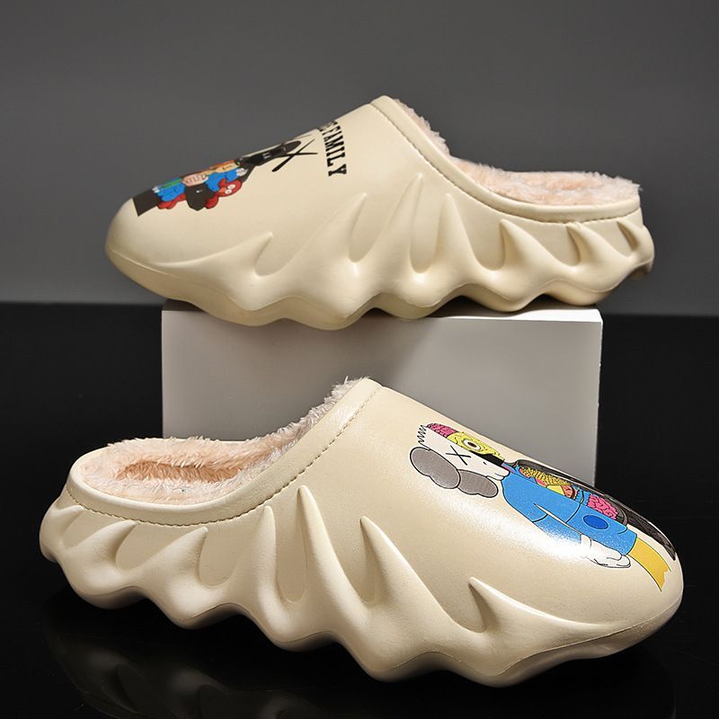Herren Damen Cartoon Kaws Plüsch Hausschuhe Warm Slippers Beige