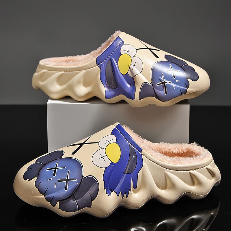 Herren Damen Cartoon Sesame Street Plüsch Hausschuhe Warm Slippers Beige