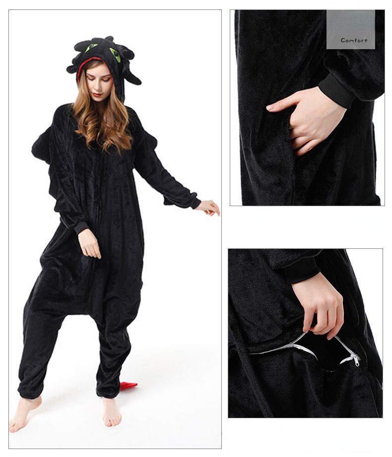 Herren Damen How to Train Your Dragon Hooded Pyjama Toothless CosplaySchlafanzug S-XL