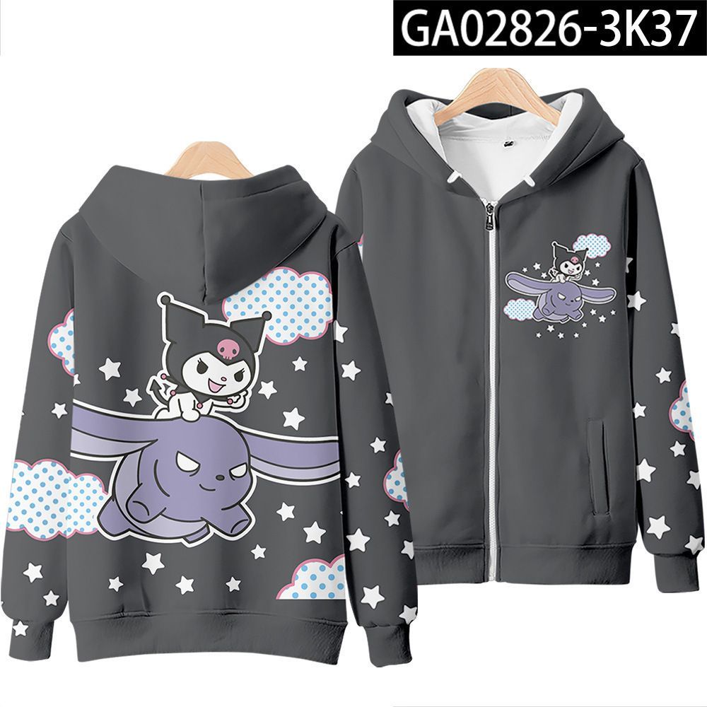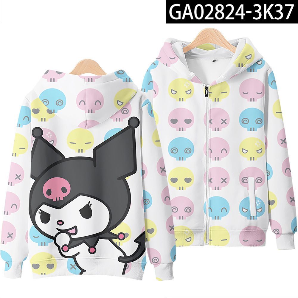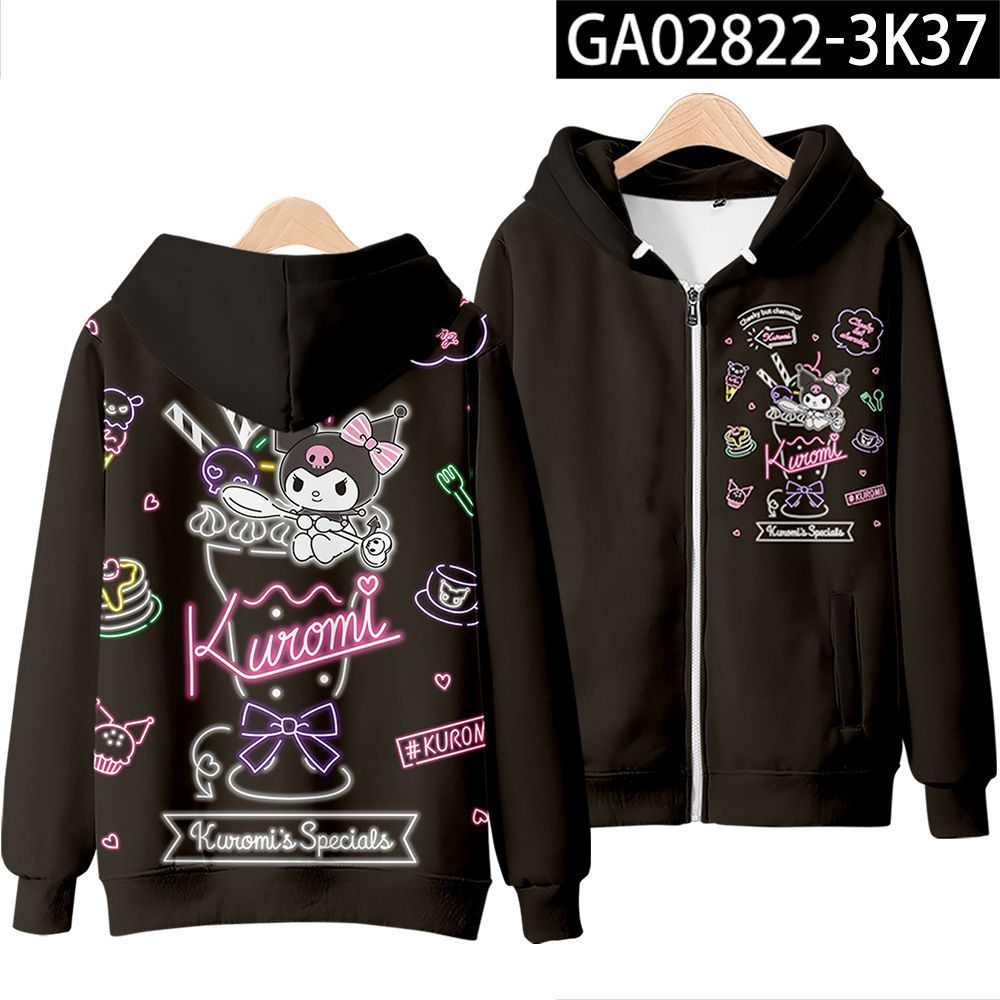 Herren Damen Kuromi Druck02 Kapuzenpullover Teenager Zip Hoodie Student Pullover
