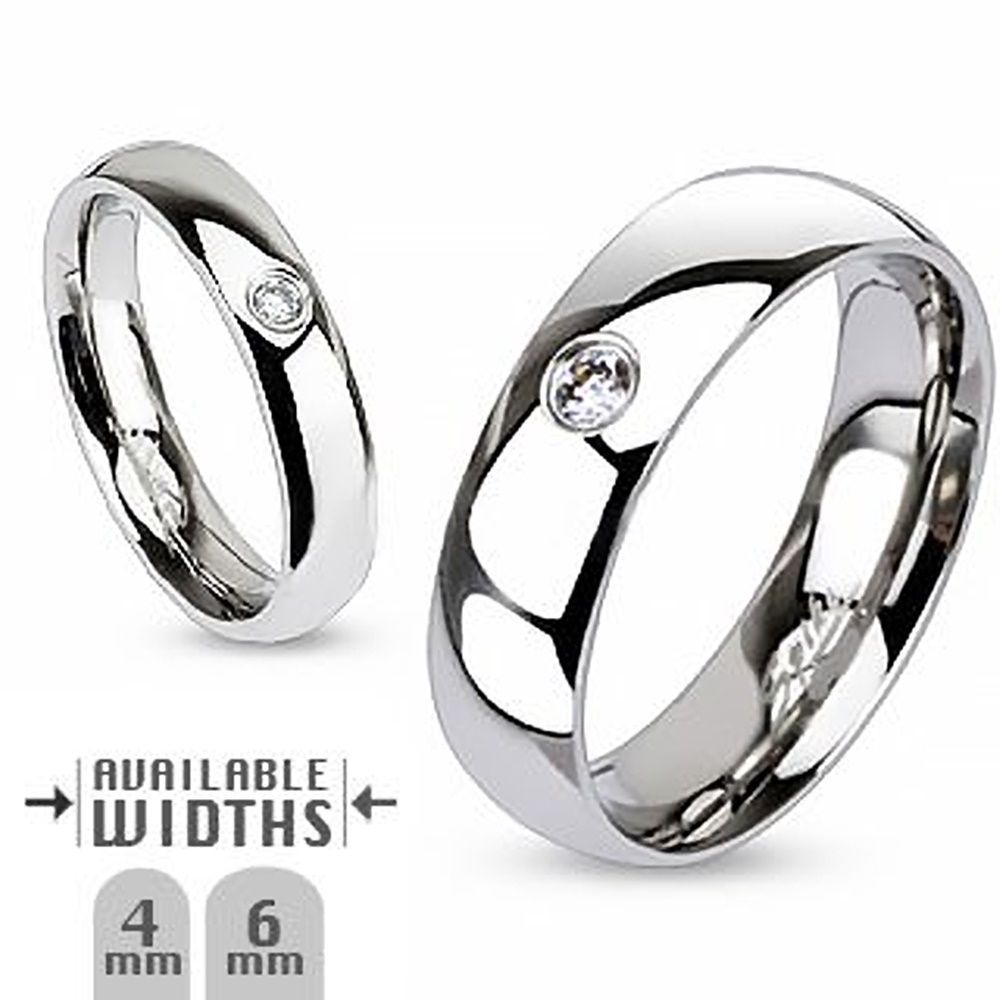 Herren Damen Ring Edelstahl Zirkonia Kristall Partnerring Ehering