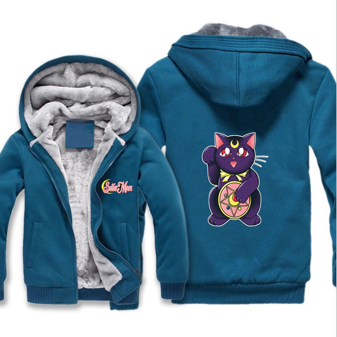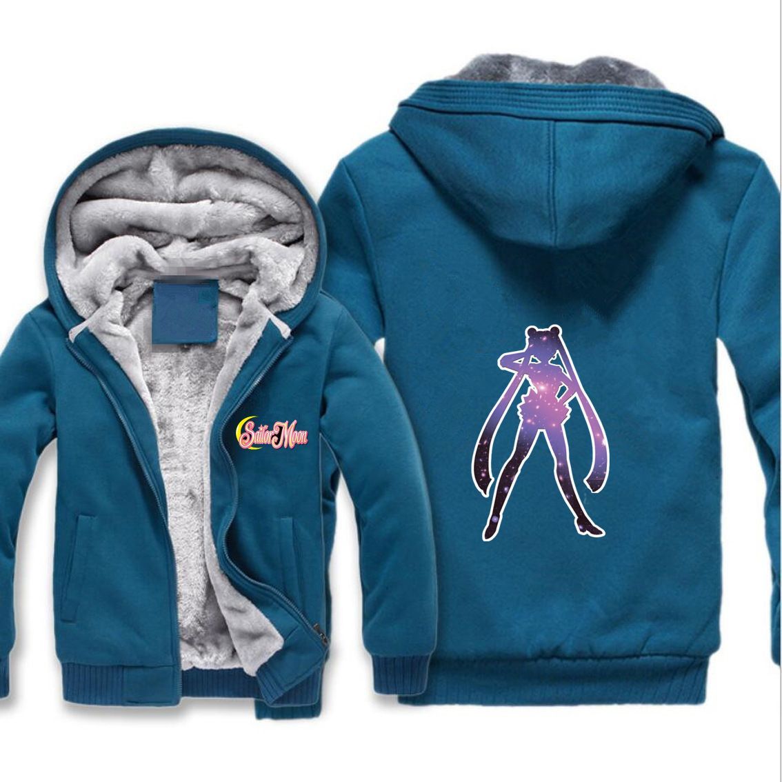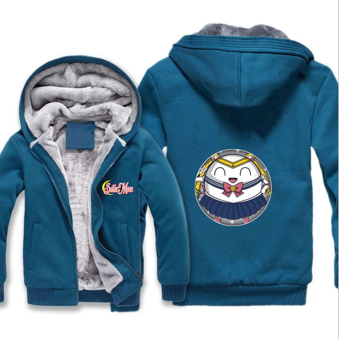 Herren Damen Sailor Moon Verdickt Warmer Kapuzenjacken Zipper Hoody Overcoat Blau