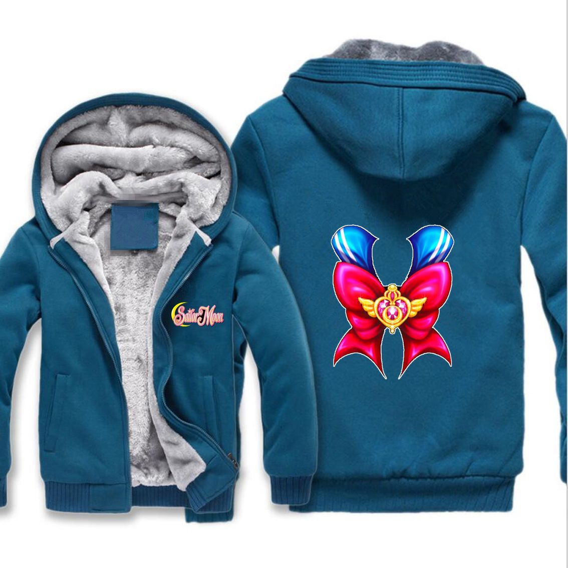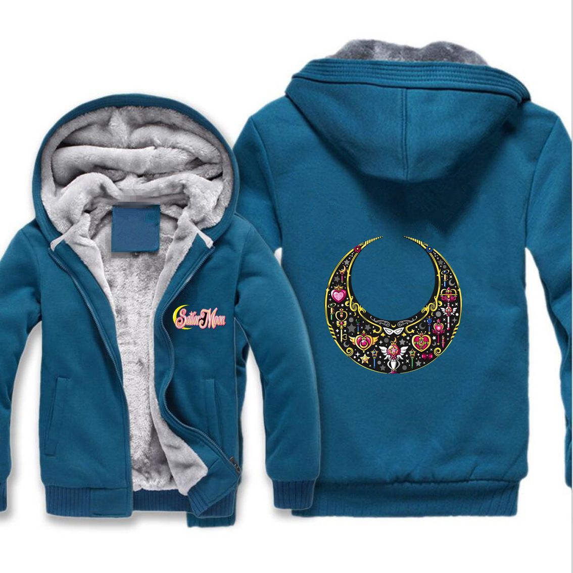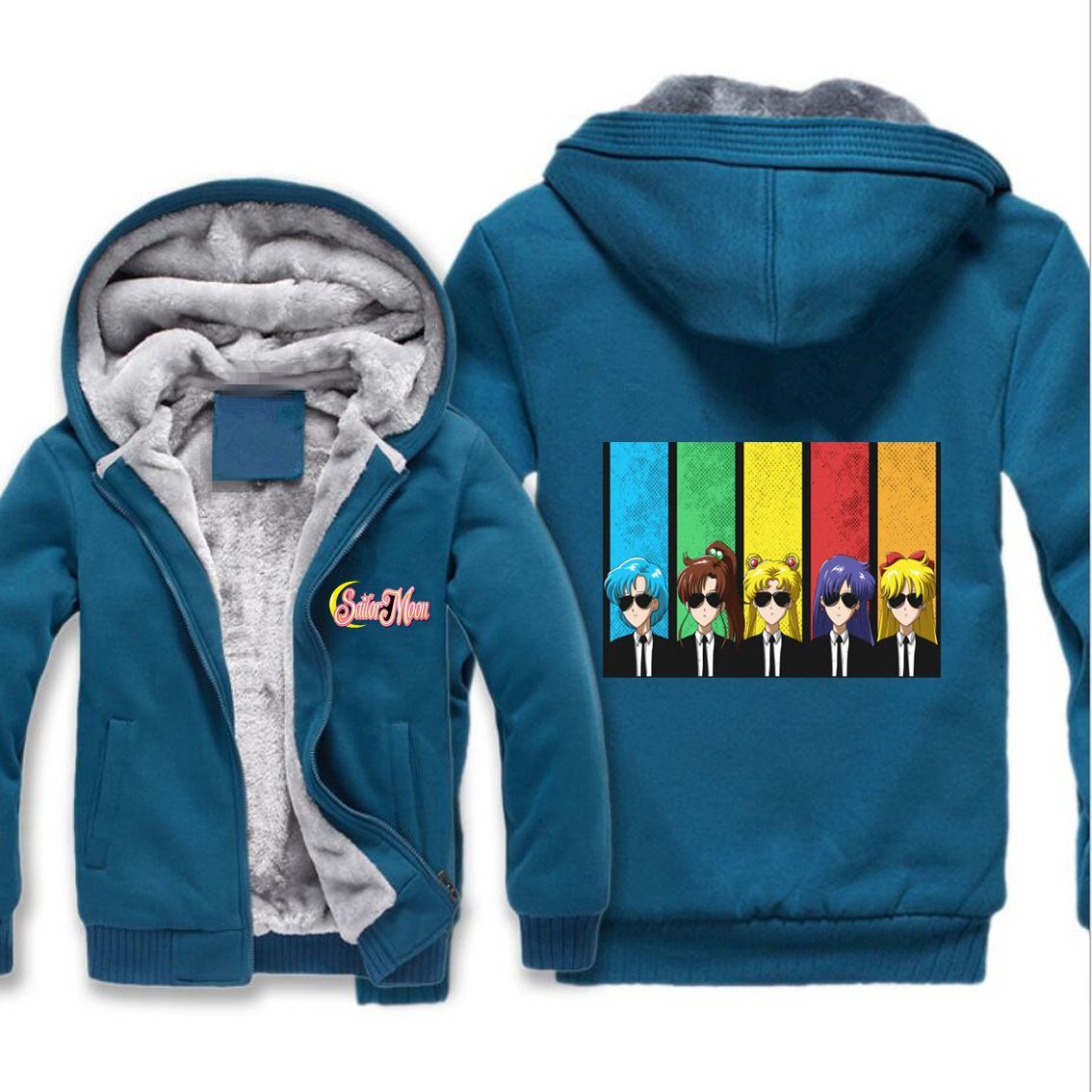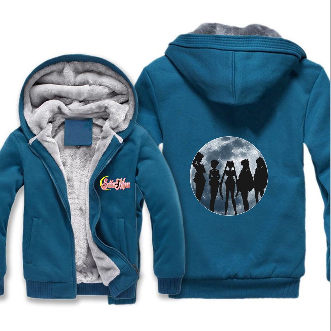 Herren Damen Sailor Moon Verdickt Warmer Kapuzenjacken Zipper Hoody Overcoat Blau