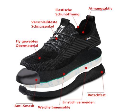 Herren Damen Sneaker Arbeitsschuhe Sicherheitsschuhe Stahlkappe Turnschuhe 39-46
