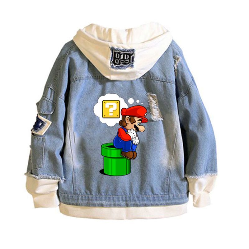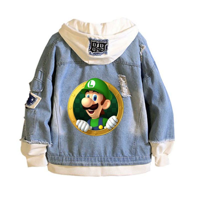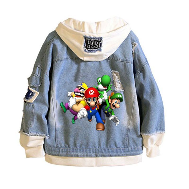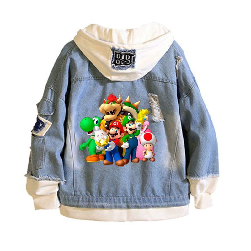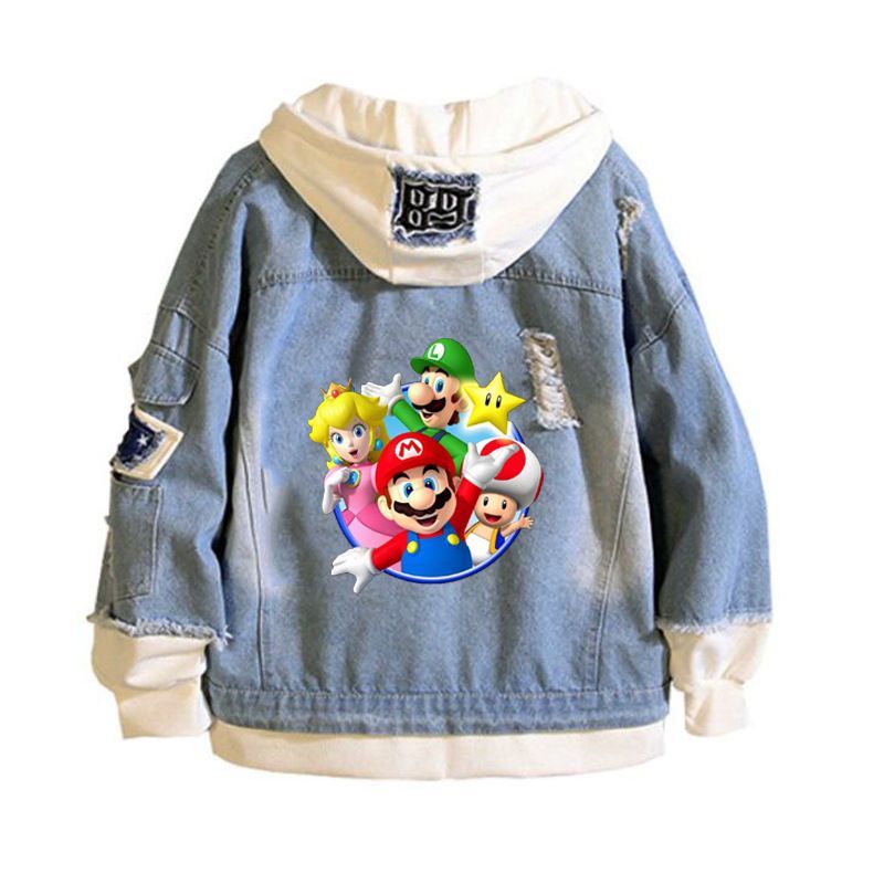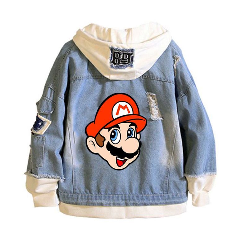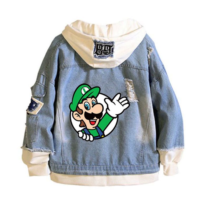 Herren Damen Super Mario Bros Hoodie Kapuze Jeansjacke Mantel Sweatshirt jacket