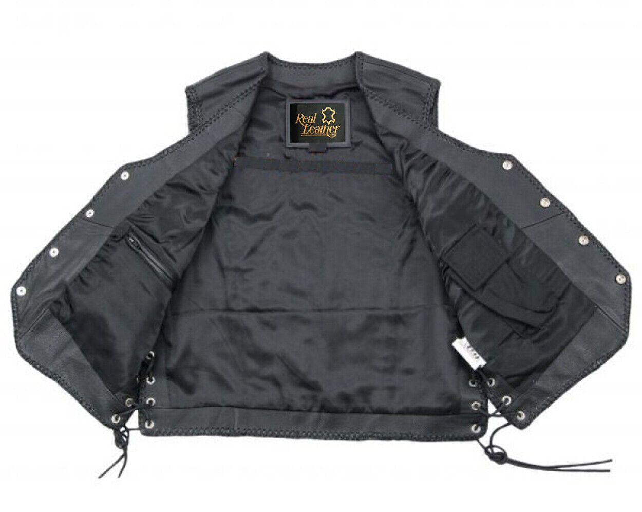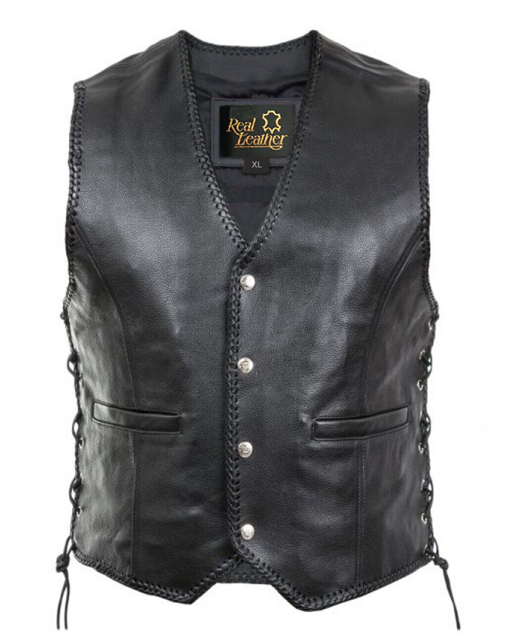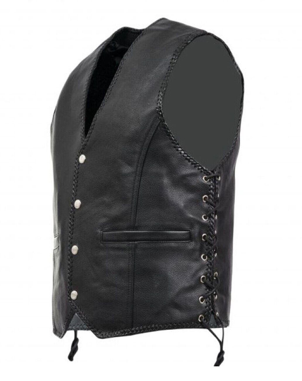 Herren echtes Kuh-Schwarz-Leder Motorrad Biker seitlich geschnürte Weste Club