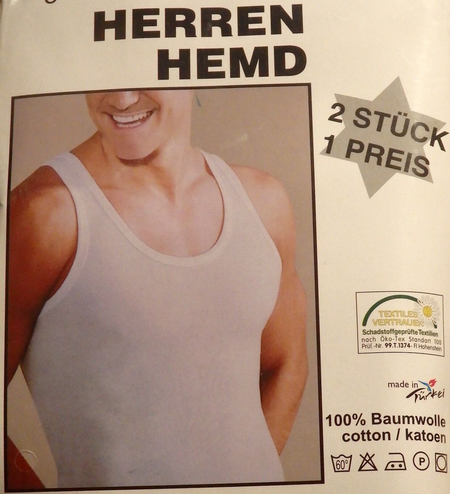 Herren Feinripp Unterhemd Doppelpack 2 Stück je Packung NEU