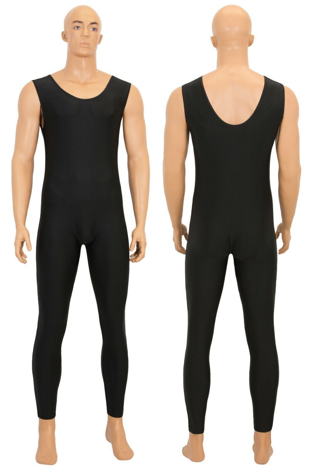 Herren Ganzanzug ohne Ärmel lange Beine Rundhals elastisch stretch shiny overall