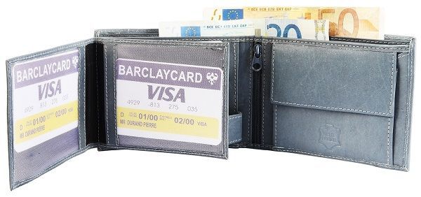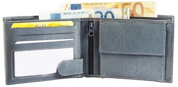 Herren Geldbörse Leder grau 12 x 9,5 x 3 cm Querformat