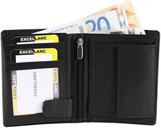 Herren Geldbörse Leder schwarz 9 x 11 cm Hochformat Gelschein- Kleingeld, Kreditk