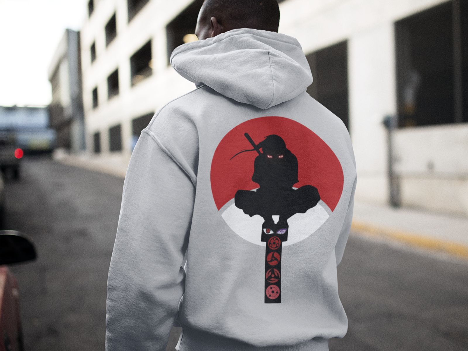 Produktinformationen Itachi Uchiha Sharingan Kapuzenpullover Qualitativ hochwertiges Kapuzenpullover Material: Baumwollgemisch Der richtige Hoodie für alle Naruto Uchiha Fans Großflächiger Itachi Uchiha Sharingan Backdruck Lieferzeit ca. 1-3 Tage Nachhaltige Hoodies von Hattree Hoodies mit verschied