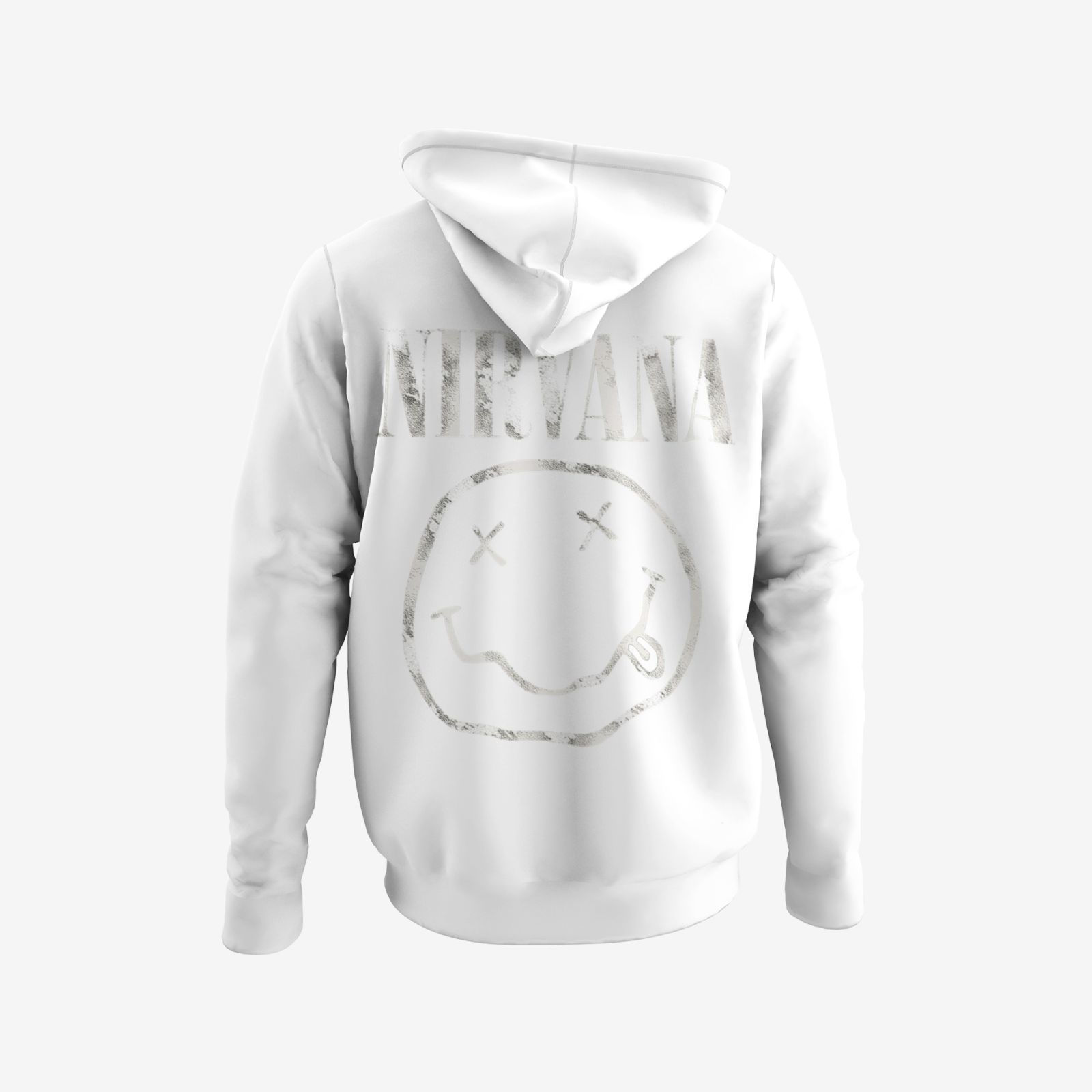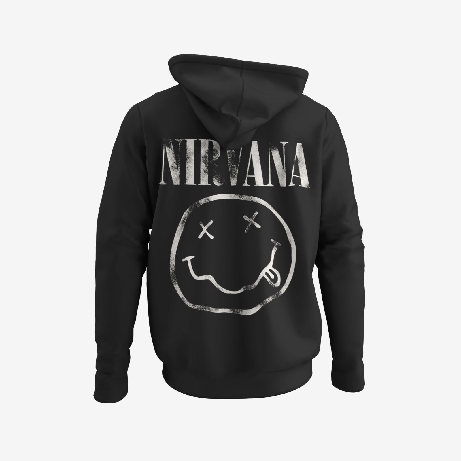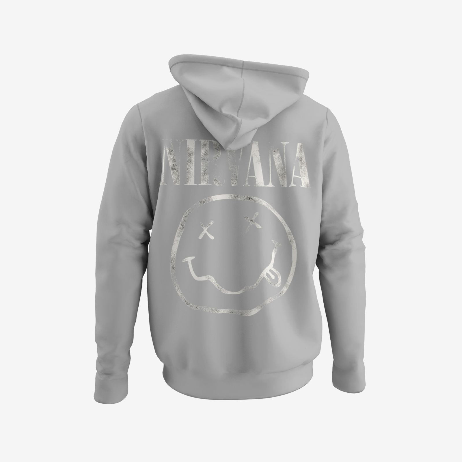 Herren Hoodie Nirvana Smiley Grau Kapuzenpullover Kurt Cobain Konzert Geschenk