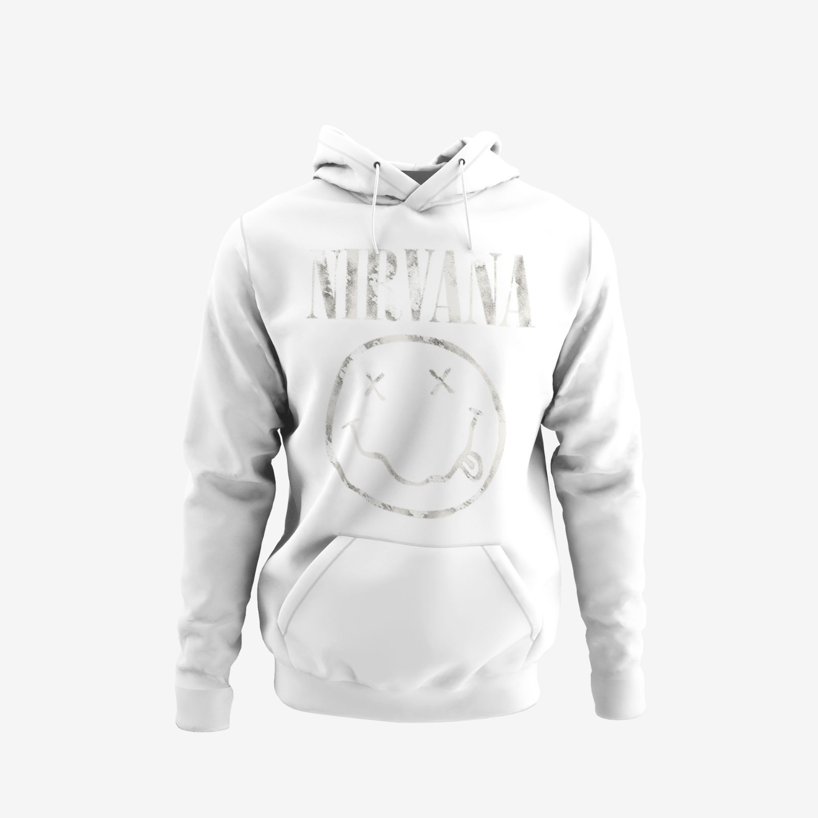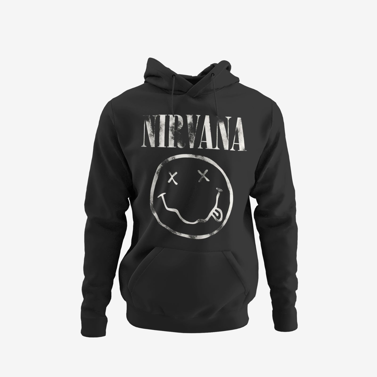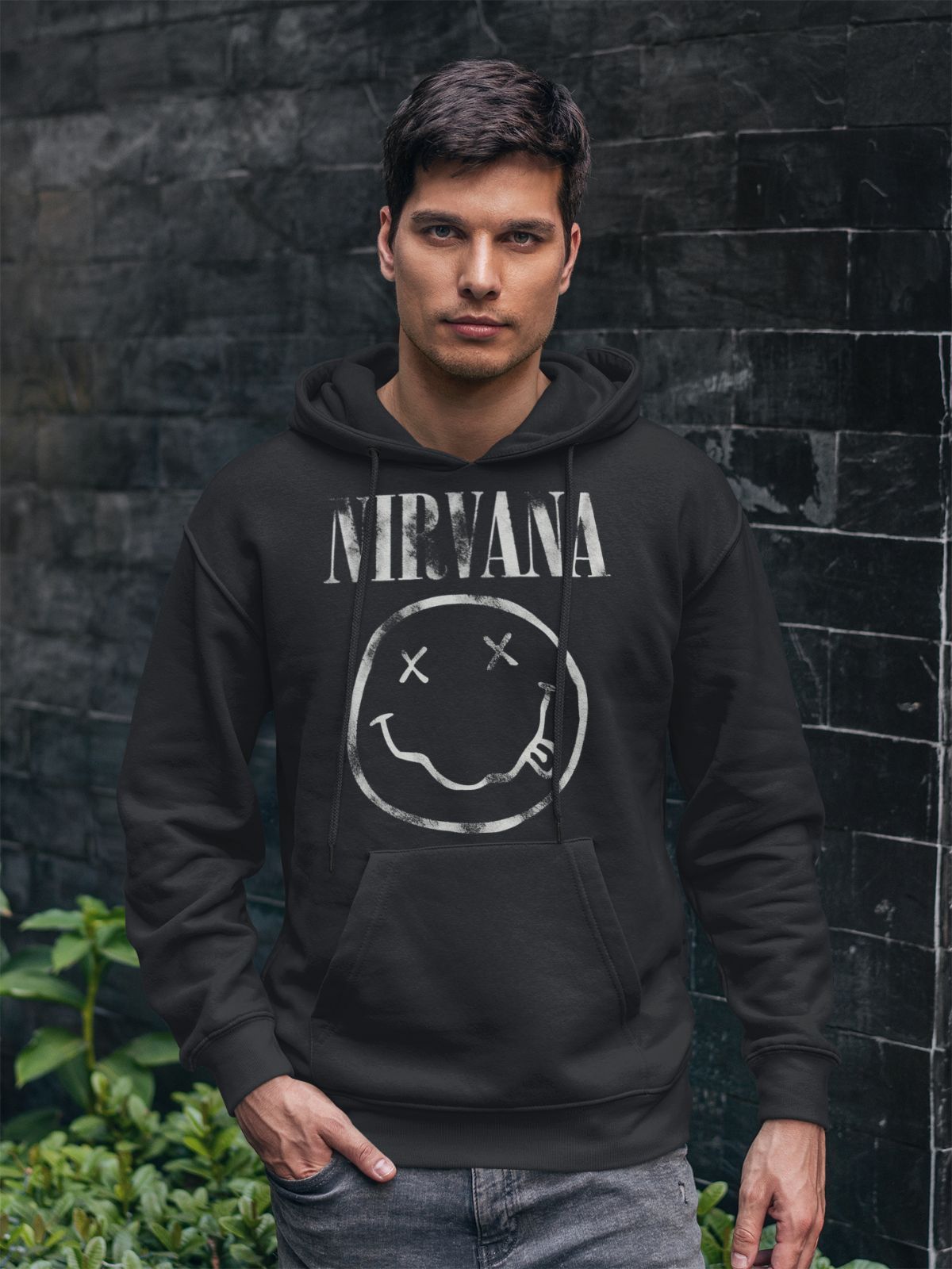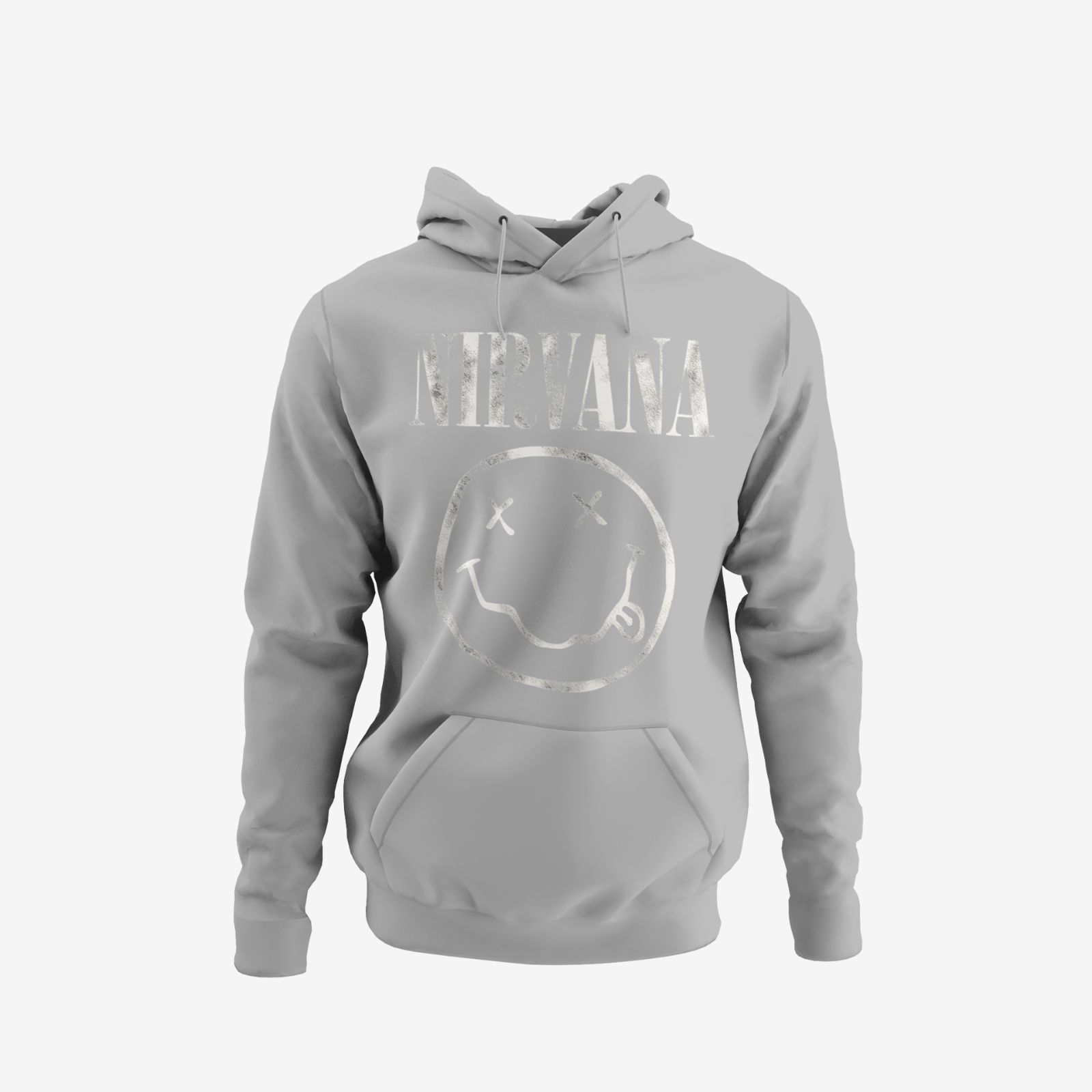 Herren Hoodie Nirvana Smiley Kapuzenpullover Kurt Cobain Konzert Geschenk Grau
