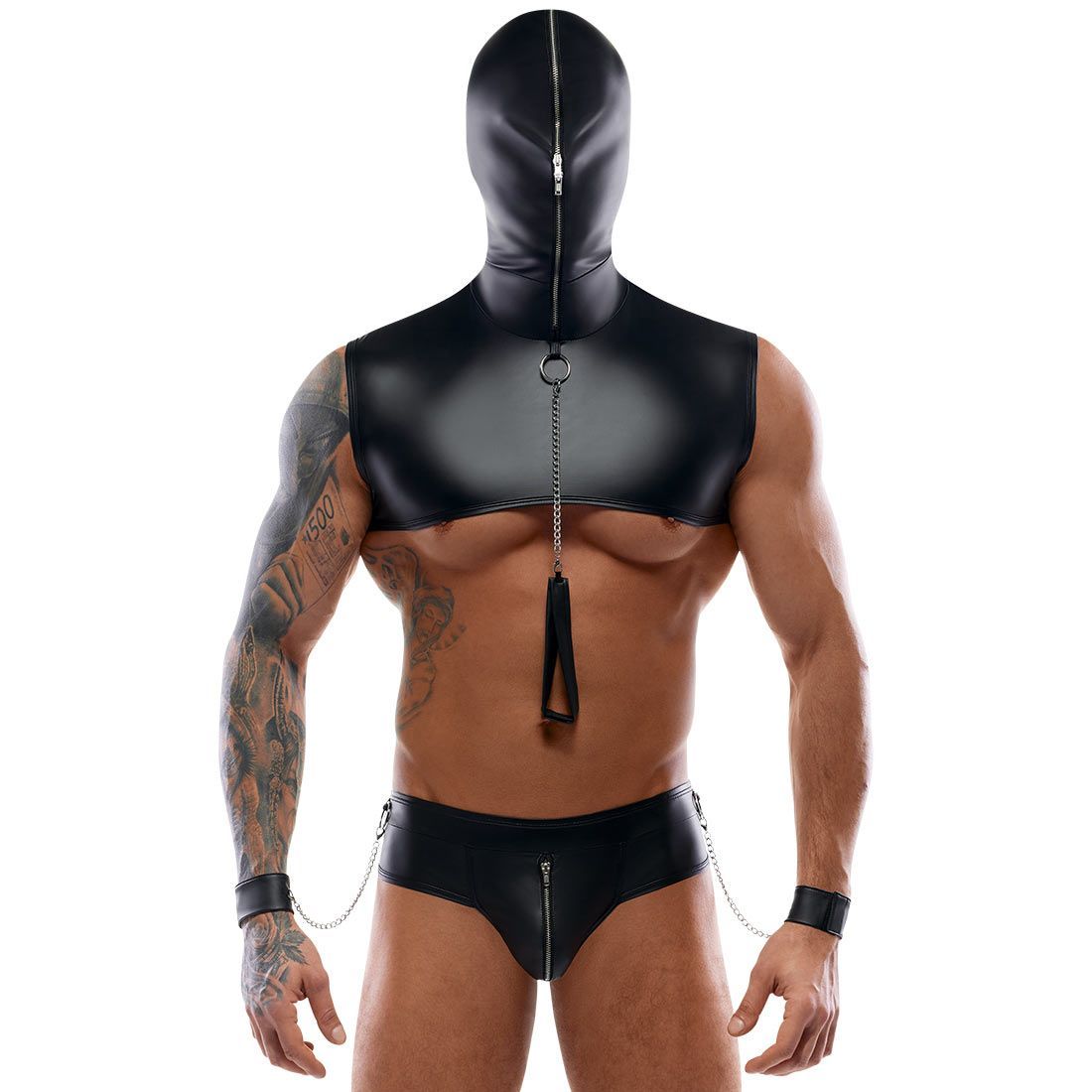Herren Kapuzen-Shirt mit String M-XXL Bondage Fesseln matter Wetlook Glanz "Jey"