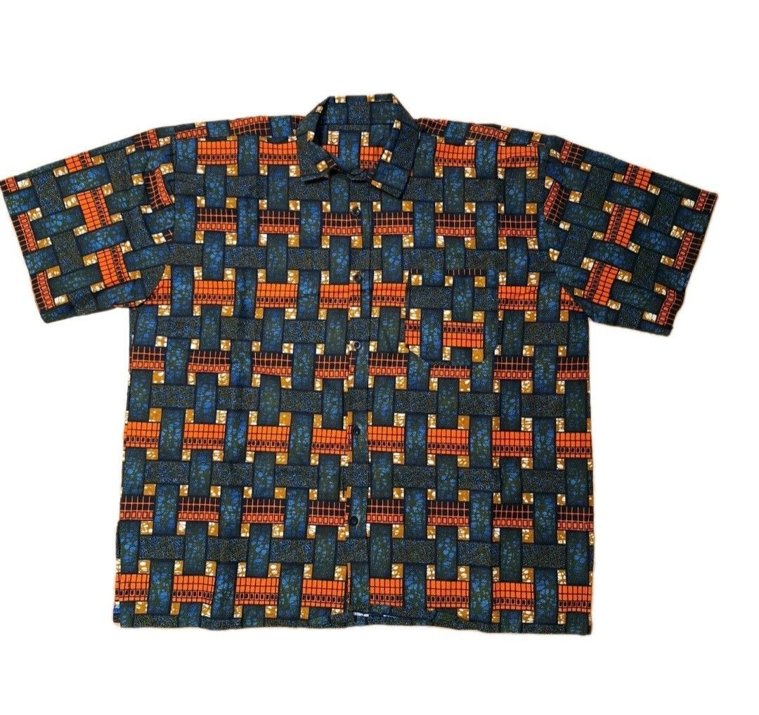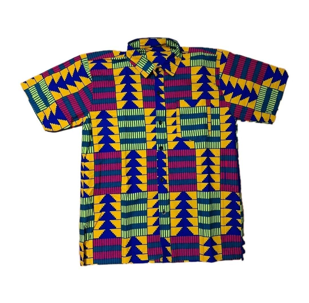 Herren Kente Afrika Hemd Kurzarm Bunt Baumwolle Sommer Freizeitshirt 2XL