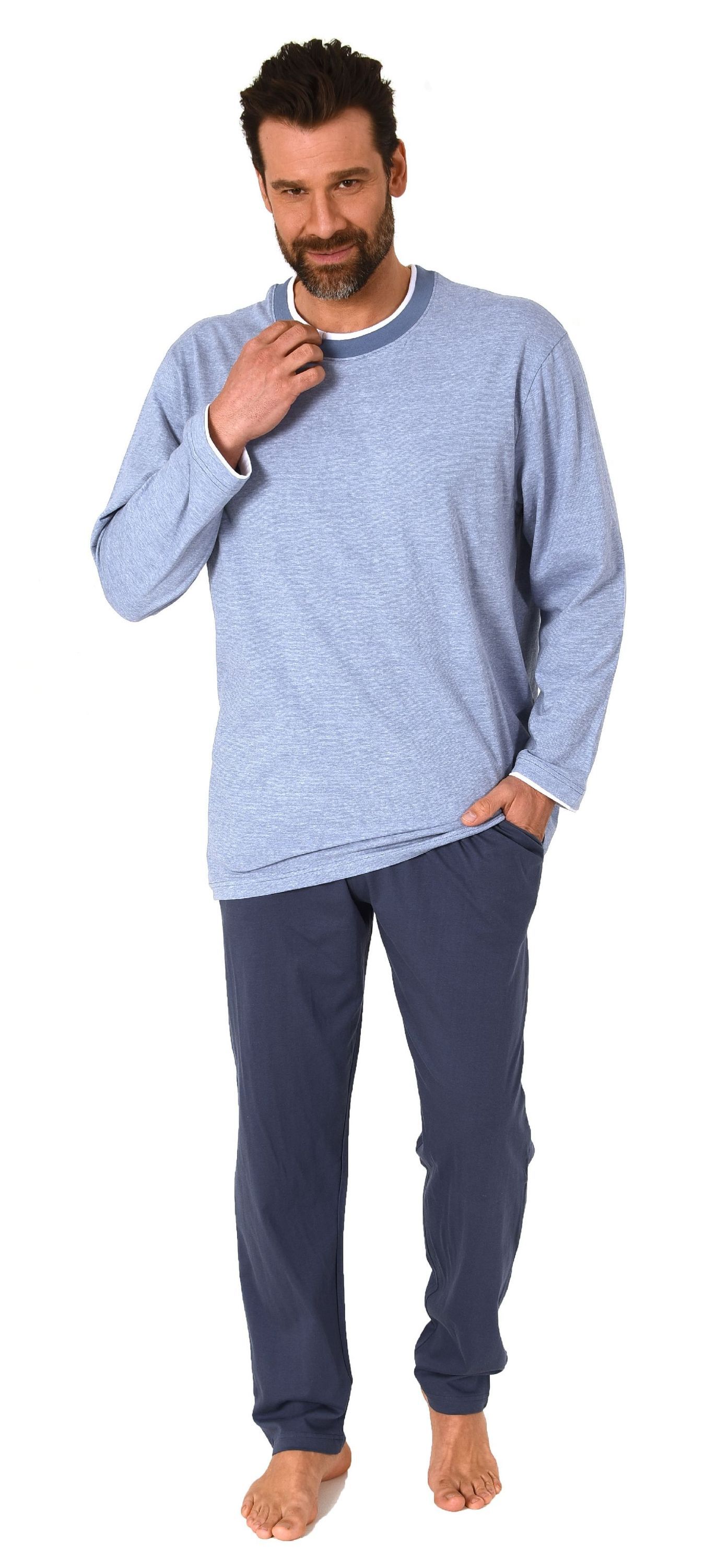 Herren langarm Schlafanzug Loungewear in chilliger Optik - auch in Übergrössen
