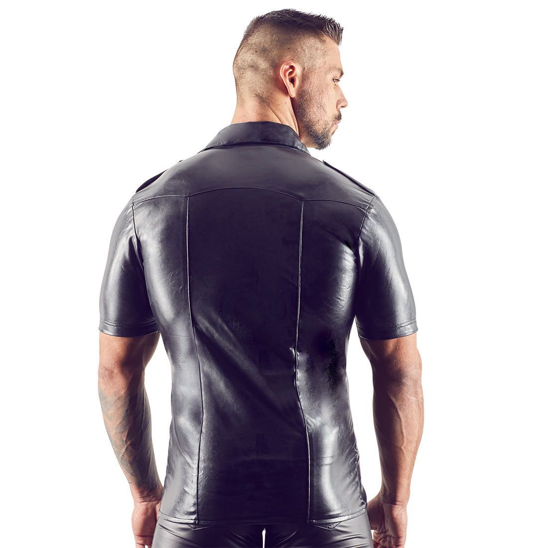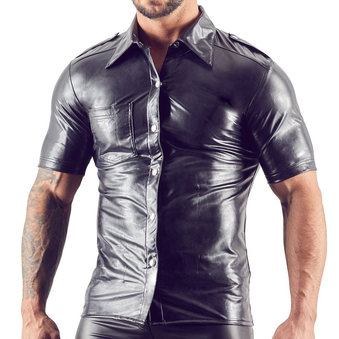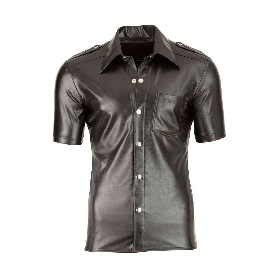 Herren Leder-Imitat Hemd S M L XL XXL Knöpfe Wetlook Look Shirt Bilitas "Uniform