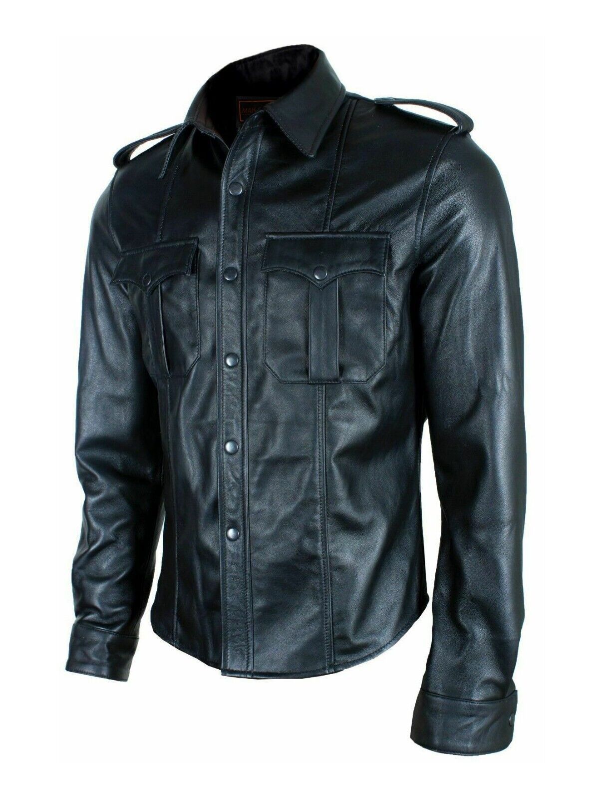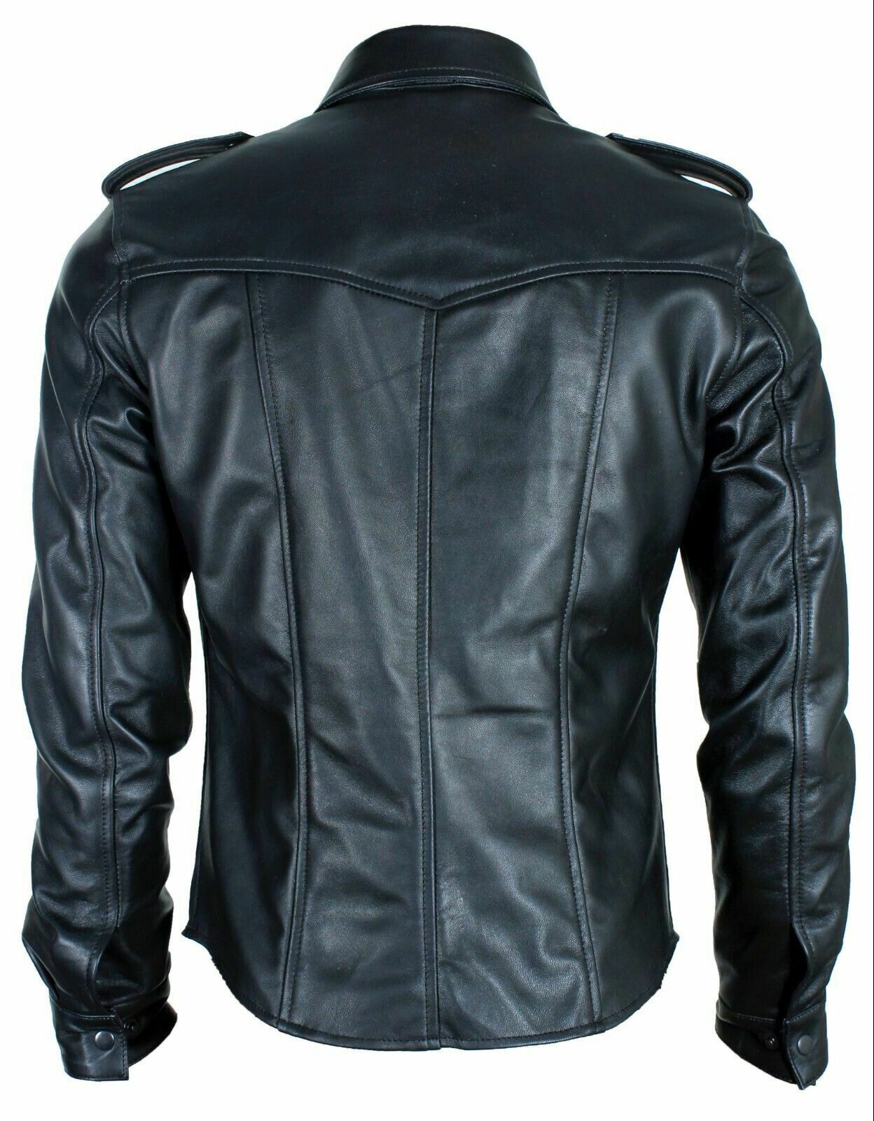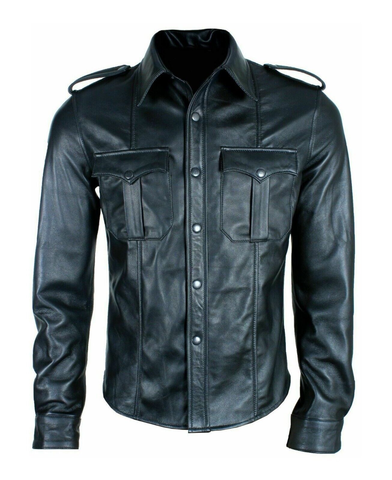 Herren Lederhemd, Hemd mit Kragen, Polizei-Stil, Cowhide Leather Police Shirt
