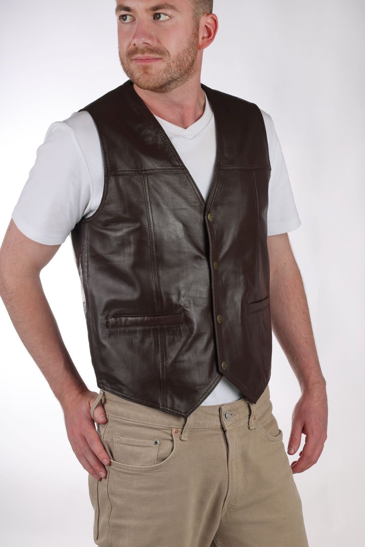 Herren Lederweste "Alfred" weiches Lamm Nappa Leder schwarz & braun