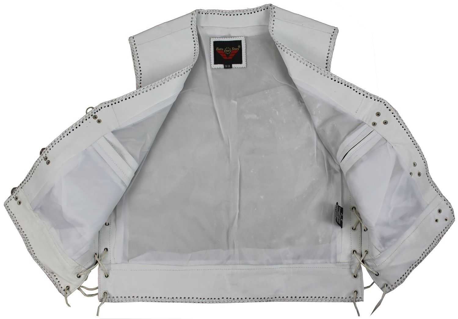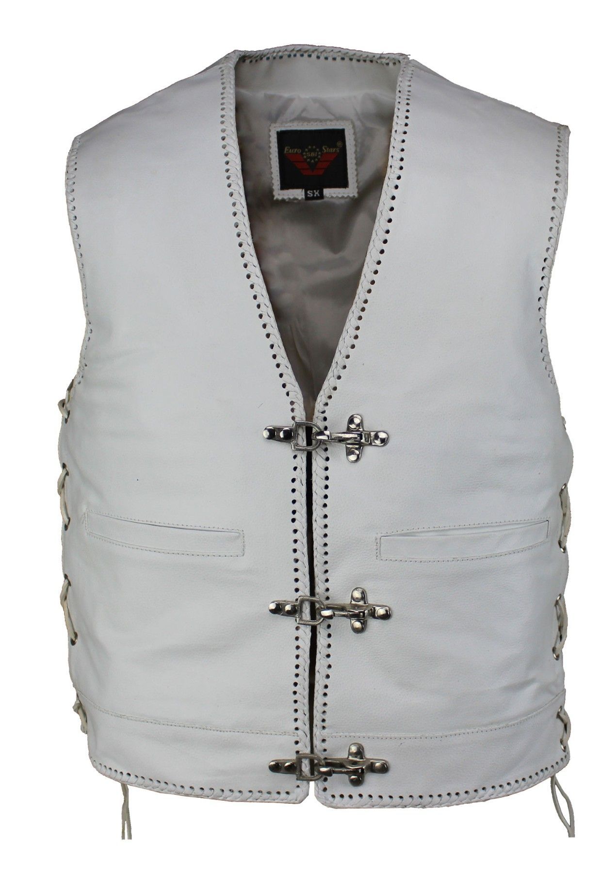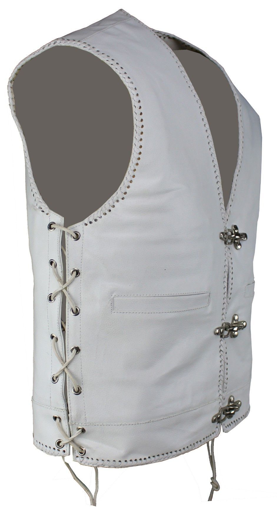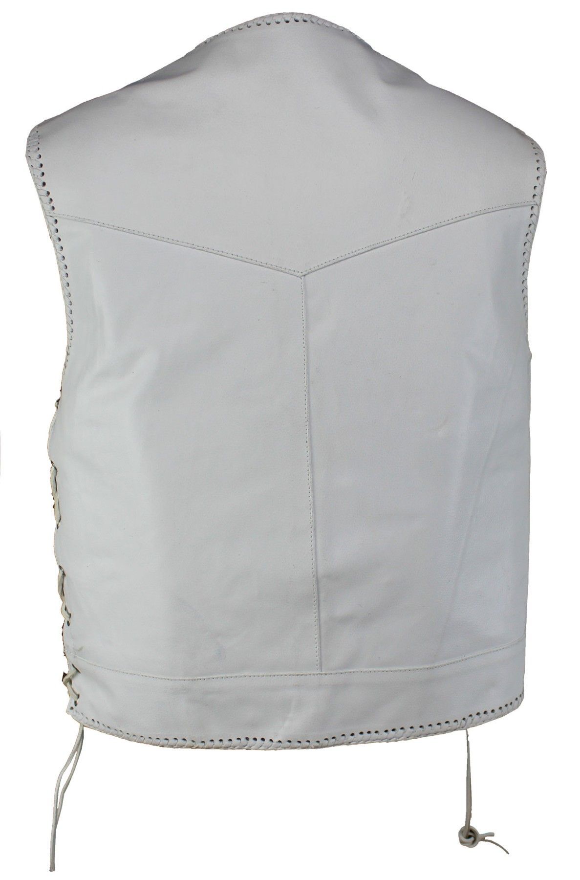 Herren Lederweste Biker Lederweste Custom Motorrad Kutte Seiten Schnür weiß