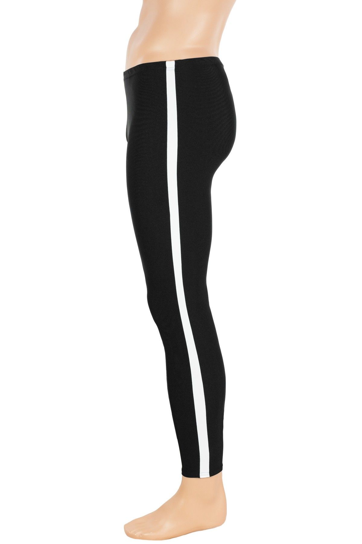 Herren Leggings schwarz mit weißen Galonstreifen Sporthose stretch hauteng glänzend