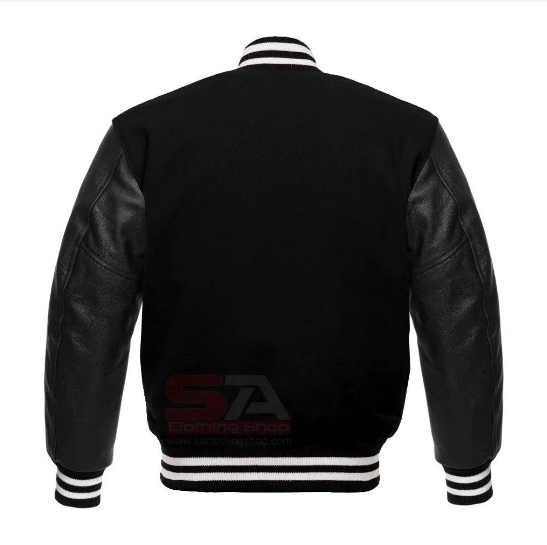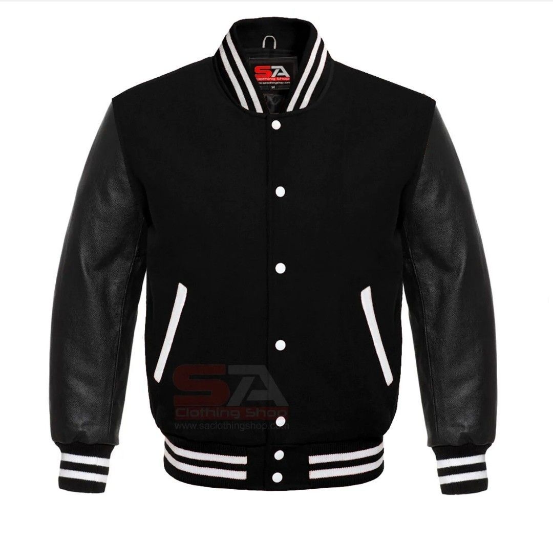 Herren Letterman College Bomber Winter Varsity Poofy Jacke schwarze weiße Linie