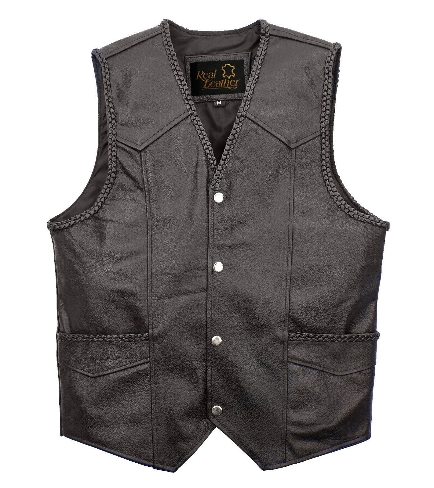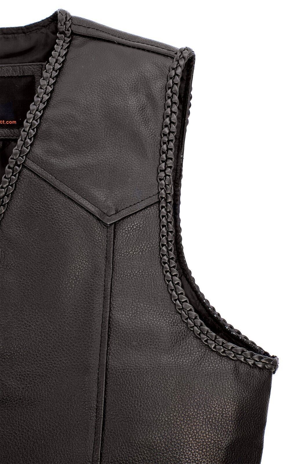 Herren Motorrad Biker Rindsleder Weste Club Weste Braided Chopper Vest Gr S 5XL